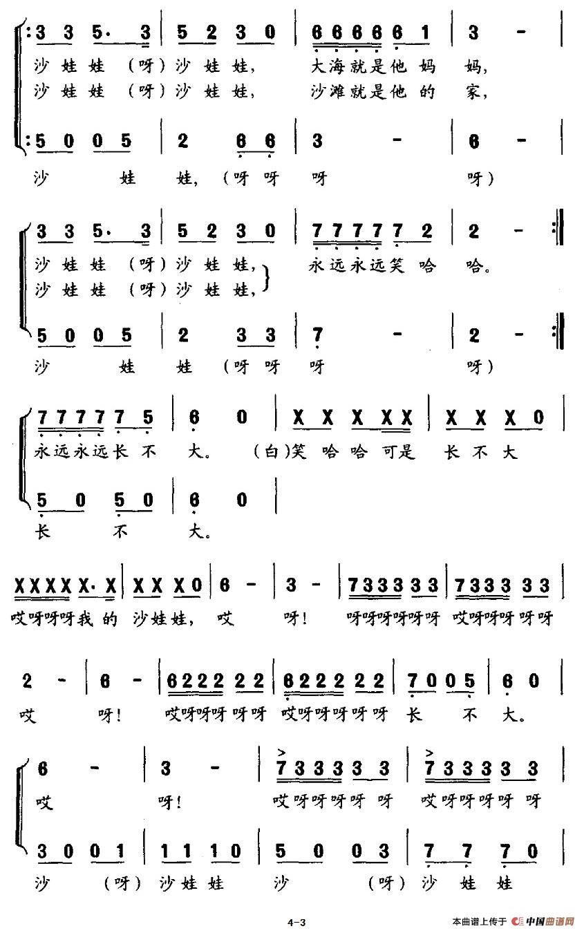 哎呀!我的沙娃娃(合唱)相关五线谱