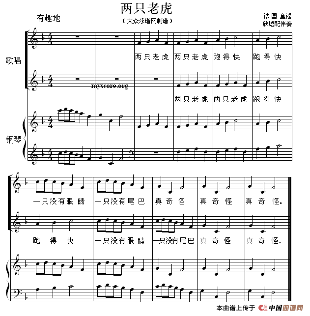 两只老虎(轮唱、欣墟配钢琴伴奏版)