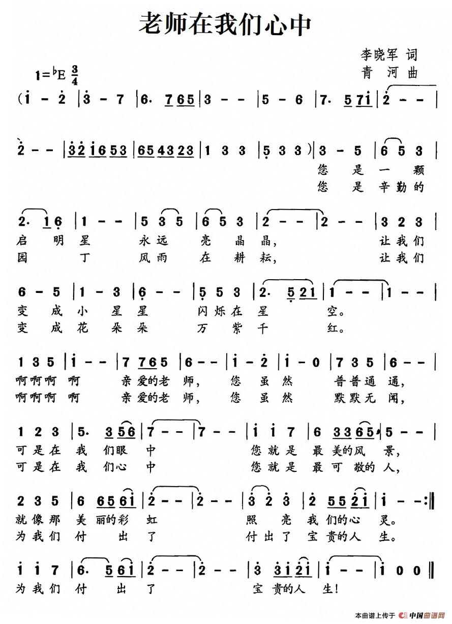 老师在我们心中相关五线谱