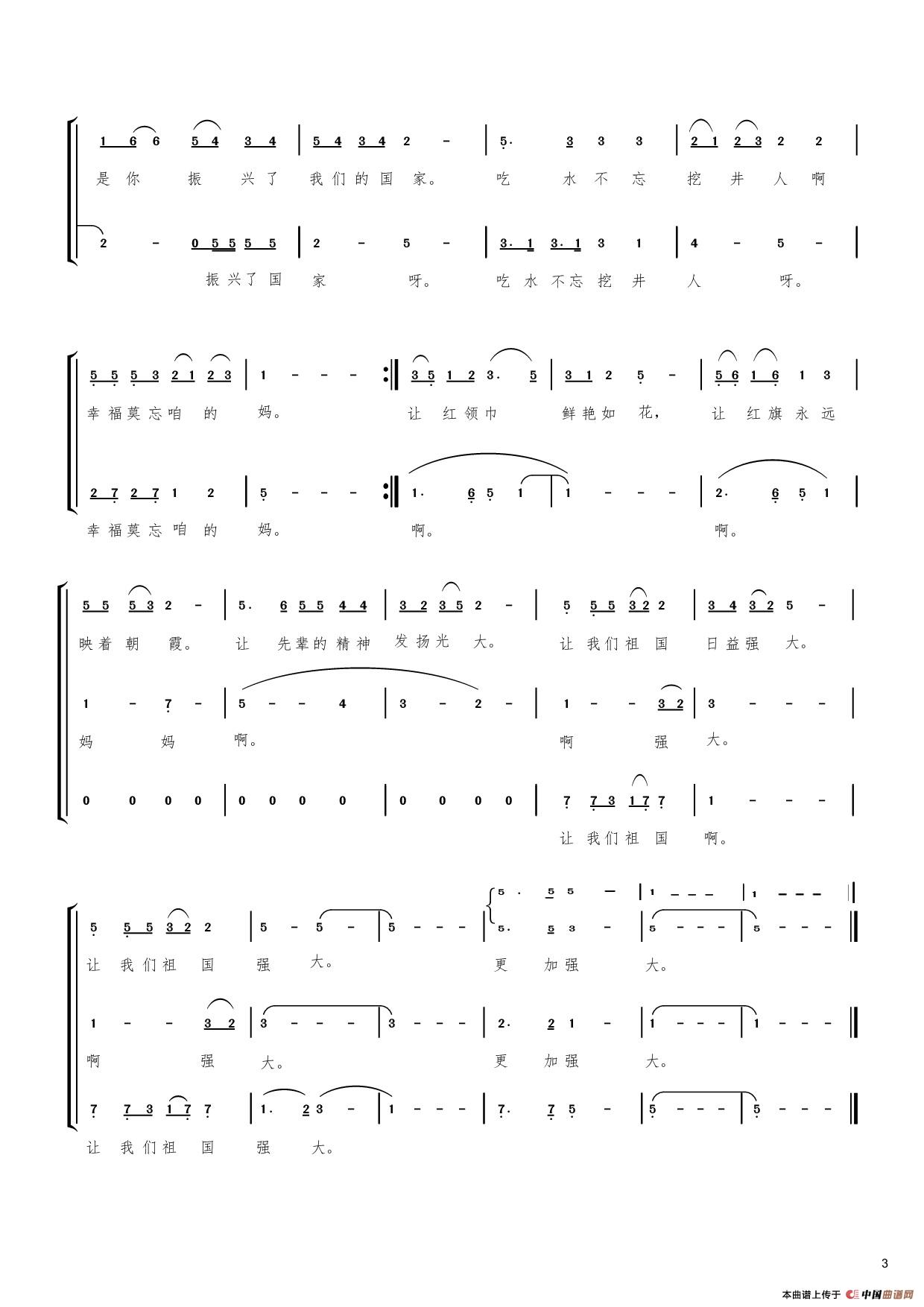 幸福莫忘咱的妈(童声合唱)相关五线谱