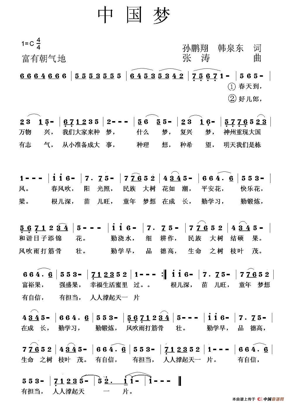 中国梦(鹤山乡中心小学代校歌)相关五线谱