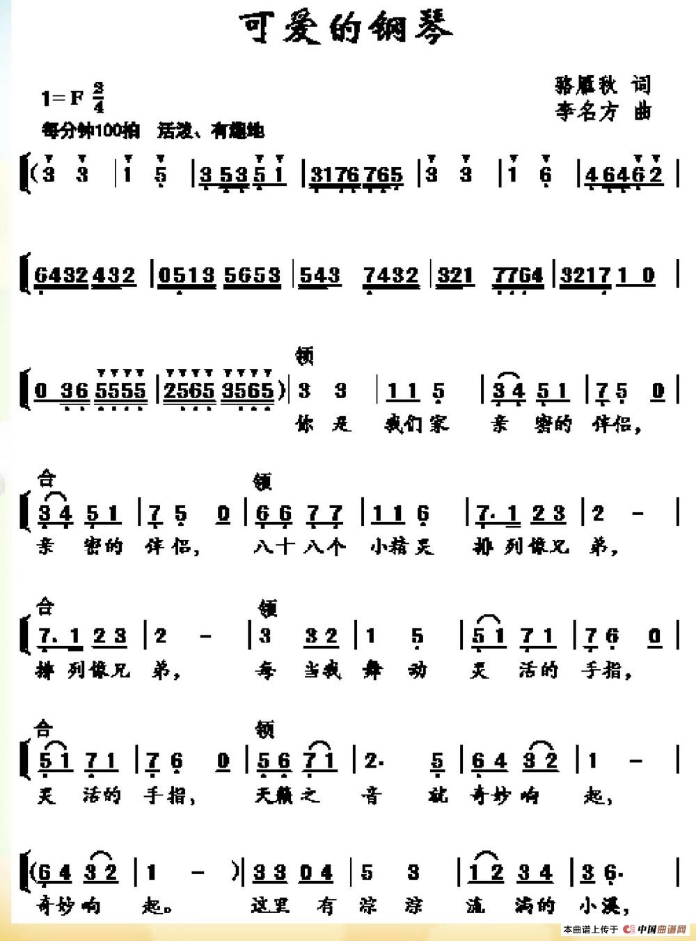 李名方曲谱推荐千古绝唱黄鹤楼乌鸦喝水(伊索寓言歌曲)清远,珠三角的后花园阿里巴巴之歌(合唱)巴马童话小雨花(云剑词 李名方曲)我深爱着你,祖国(牧歌词 李名方曲)开心果(邓丹心词 李名方曲)我爱苏州(曹勇词 李名方曲)不落星辰岳阳楼你别问,这是为了什么大武汉咏叹中国,只有一个(独唱+伴唱)燕园,冬天的童话春天女孩东华寺箴言歌狐狸建筑师东方的自豪(王朝圆舞曲)嘿!中国少年(金本词 李名方曲、合唱)去香港看一看