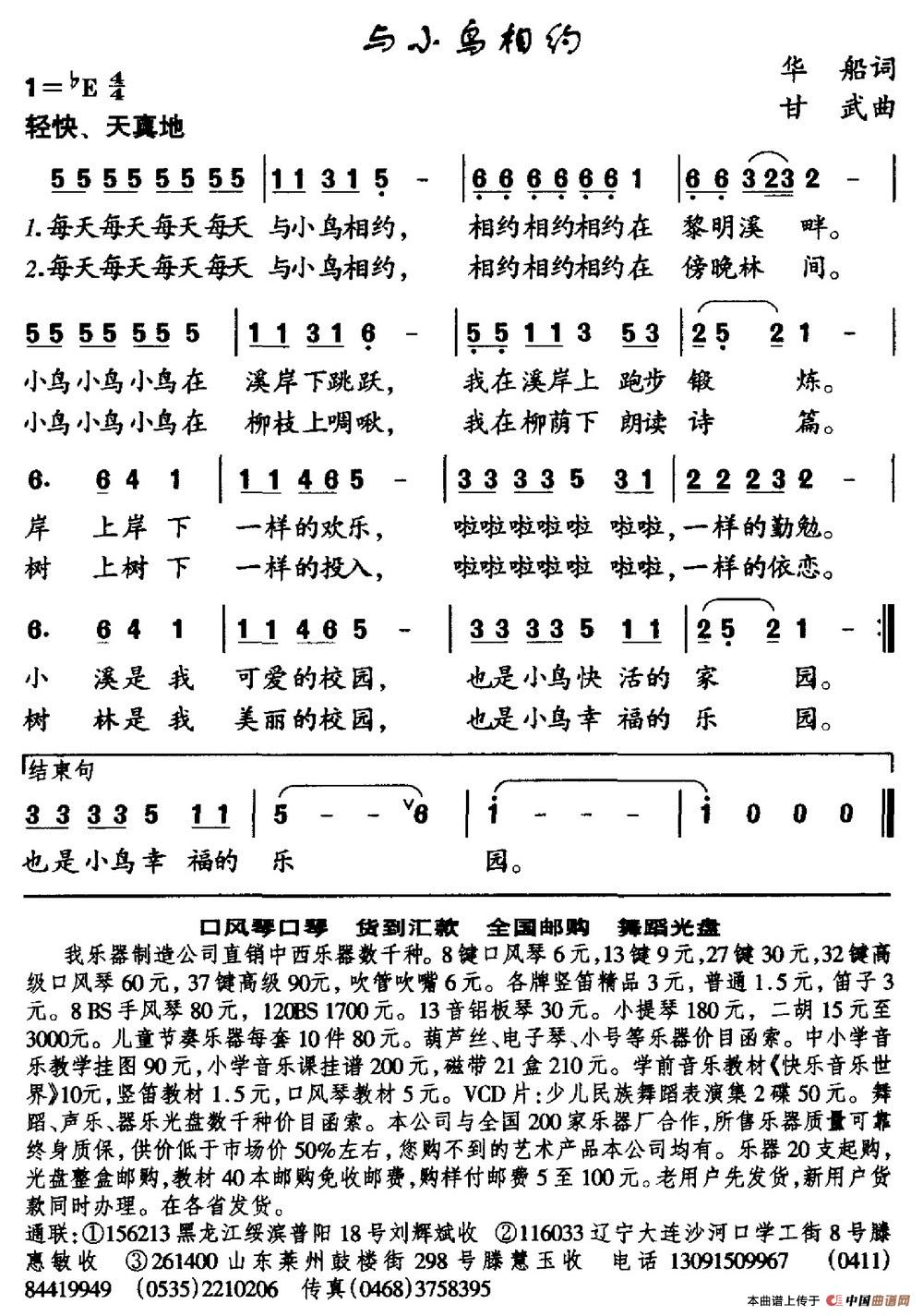 与小鸟相约(华船词 甘武曲)相关五线谱