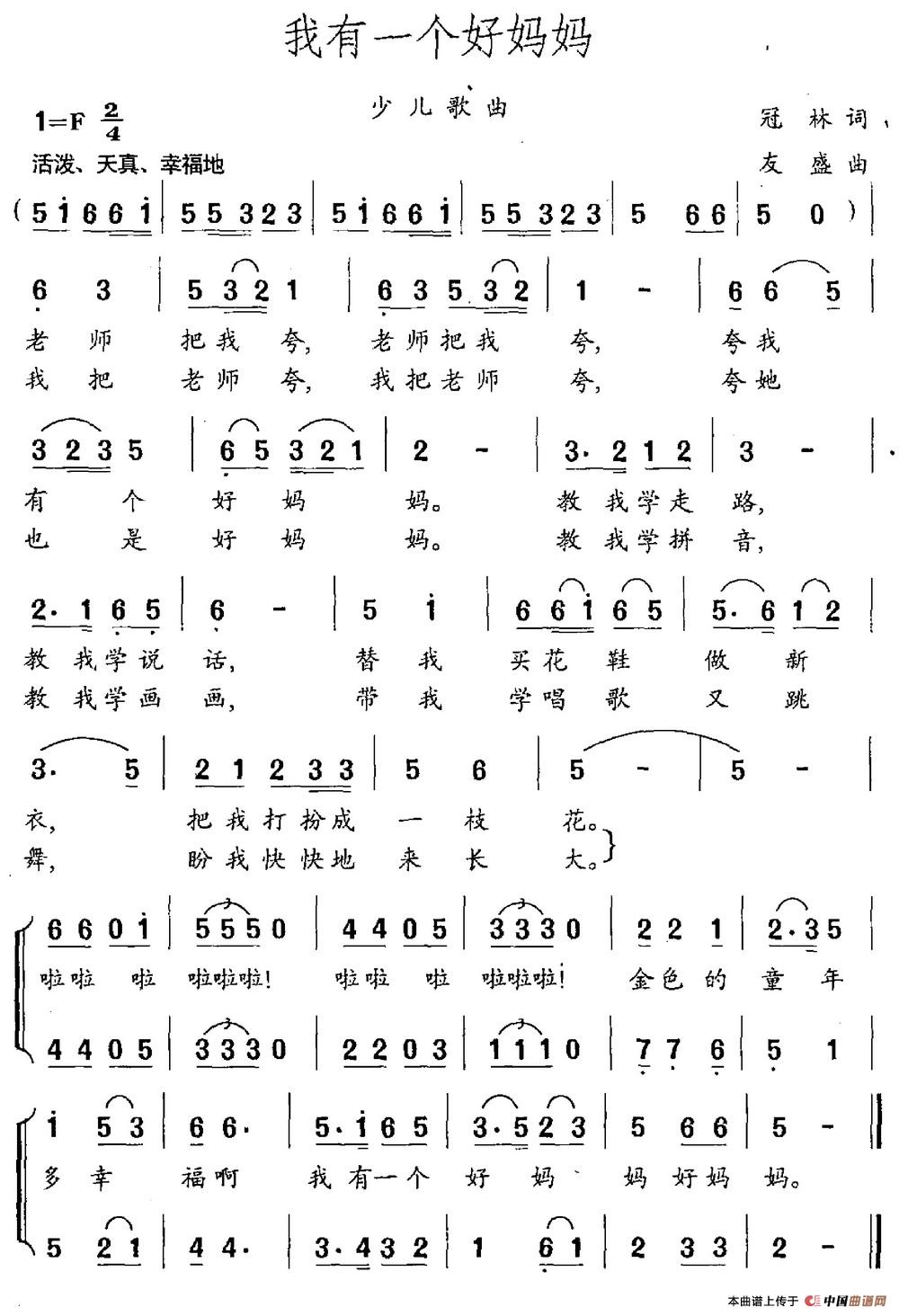我有一个好妈妈(冠林词 友盛曲)相关五线谱