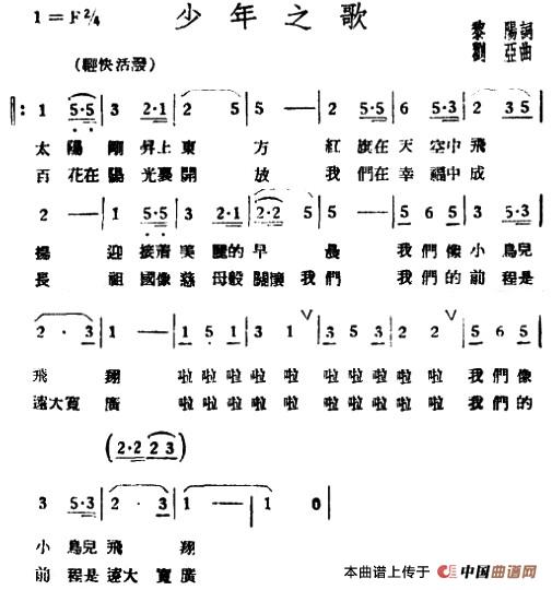 少年之歌(黎阳词 刘亚曲、合唱)相关五线谱