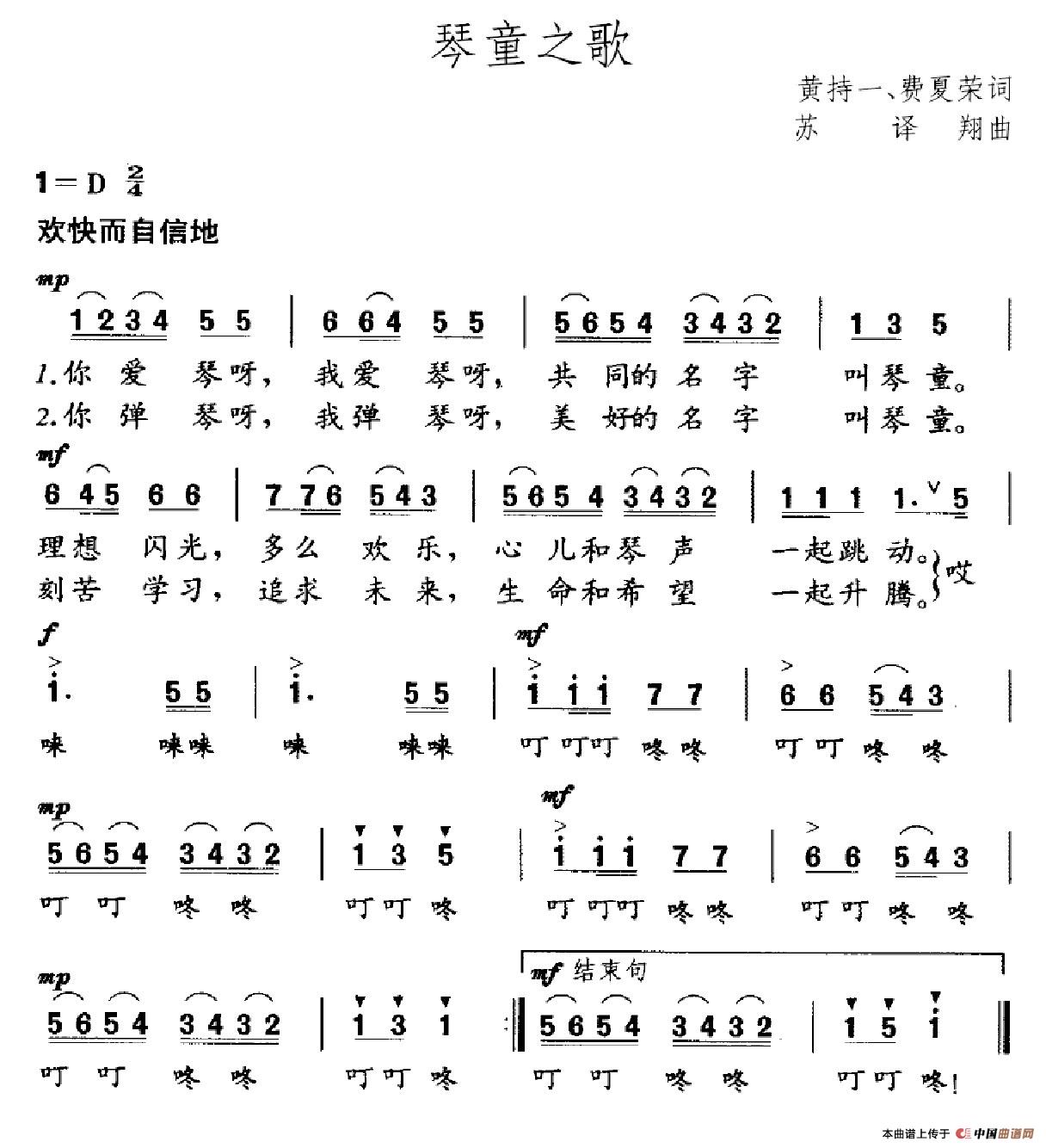 琴童之歌(黄持一 费夏荣词 苏译翔曲)相关五线谱