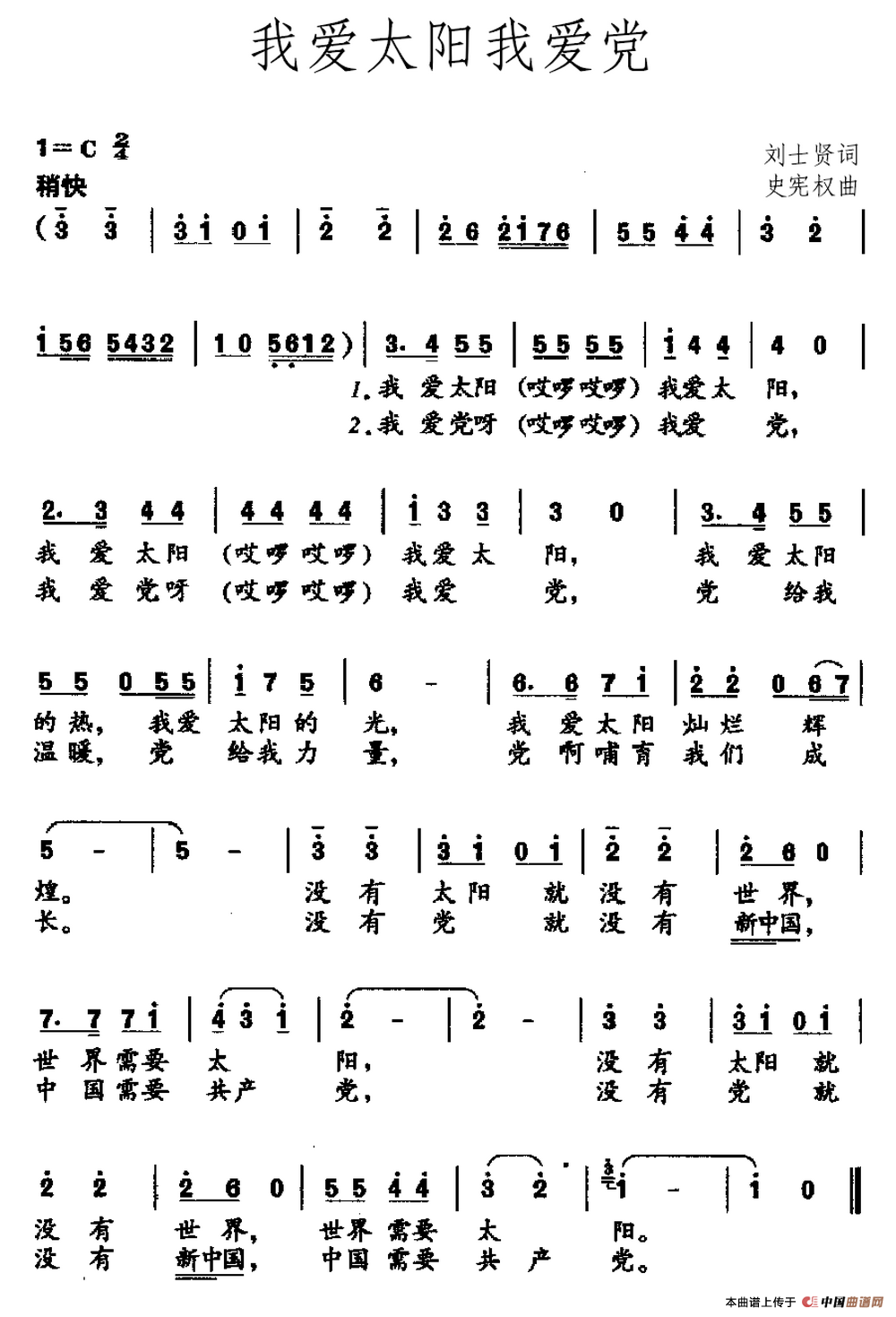 我爱太阳我爱党相关五线谱