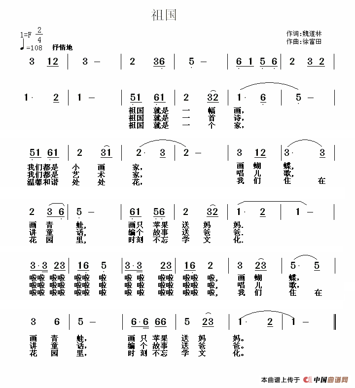 徐富田曲谱推荐杜鹃花开长白山监狱人民警察之歌思南情思我是爸妈好的宝宝月球上的中国红钱字歌金蛇狂舞(献给蛇年献给春晚的歌)安全卫士我们快乐歌唱胖胖猫远方的我远方的你(又名:远方的我,远方的你)亲亲的鸭绿江双休日小唱亲亲的老母亲(龚正斌词 徐富田曲)俄罗斯姑娘我心中的女孩永远的教室第一时间(龚正斌 靖江南词 徐富田曲)梦(魏道林词 徐富田曲)小金鱼(胡敦骅词 徐富田曲)甜甜的歌谣