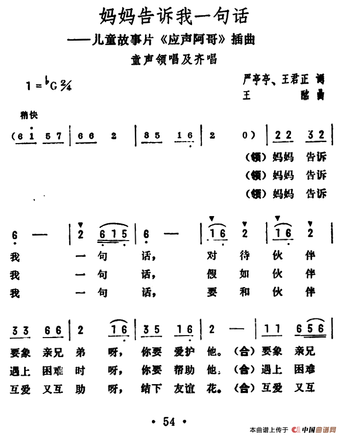王酩曲谱推荐知音难忘今宵(弹唱谱)西湖美(电视剧《白云飞少校》插曲)边疆的泉水清又纯(影片《黑三角》插曲)难忘今宵(梦之旅版)绒花渔家姑娘在海边(电影《海霞》插曲)妈妈看看我吧(电影《樱》插曲)边疆的泉水清又纯(Border Land Springs)(汉英文对照)啊!杜鹃花呀(科教片《四川杜鹃花》插曲)冰帆理解的歌你可曾思念他六月荔枝红绒花(简和谱)小小秋千板(电视片《天府之梦》插曲)边疆的泉水清又纯雪花(于福源词 王酩曲)知音(同名电影插曲)十三妹(电影《十三妹》主题曲)