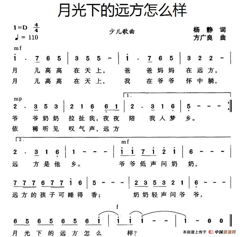 方广良曲谱推荐听月亮(金黎词 方广良曲)因为我们是飞行员(阎肃词 方广良曲)不要说你没有家(唱给孤寡老人的歌)一路辉煌的中国(小客、杨云慧词 方广良曲)望月(李迅词 方广良曲)今年该回家保卫祖国进行曲(邬大为、魏宝贵词 方广良曲)你是一片云(吕永清词 方广良曲)走进雨里(罗晓航词 方广良曲)在鲜花盛开的地方禾雀花幸福在哪里(王光池词 方广良曲)春天里的小鸟禾雀花哥不回来妹不嫁(男女声二重唱)梦中的海童年的四季(熊益美词 方广良曲)巴山夜雨(蔡崇周词 方广良曲)花的世界 花的天下(合唱)欠你(谨以此歌献给所有中国军嫂)