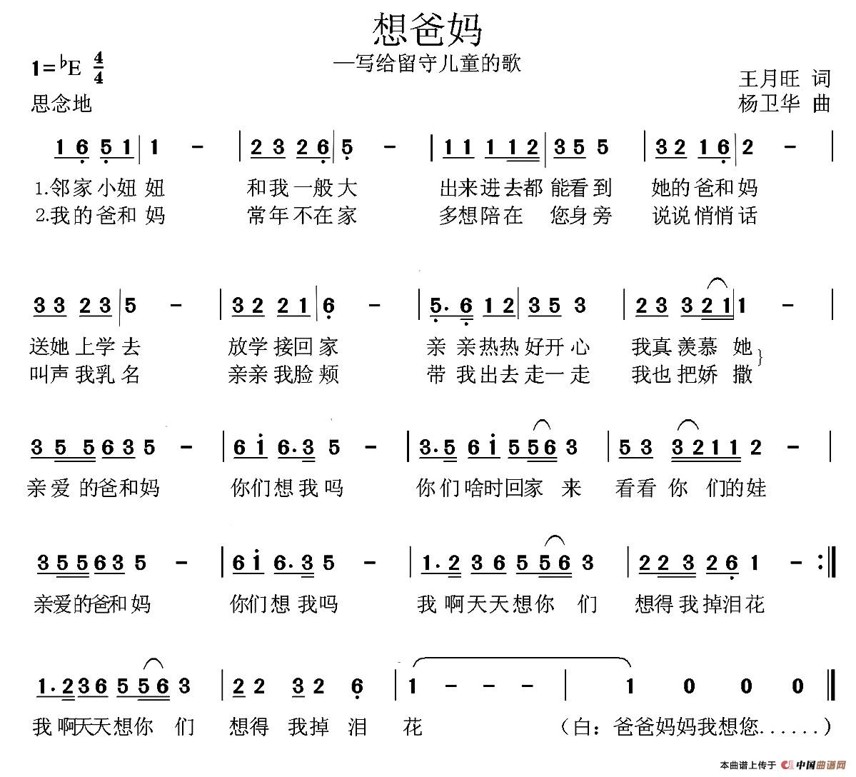 想爸妈(王月旺词 杨卫华曲)相关五线谱