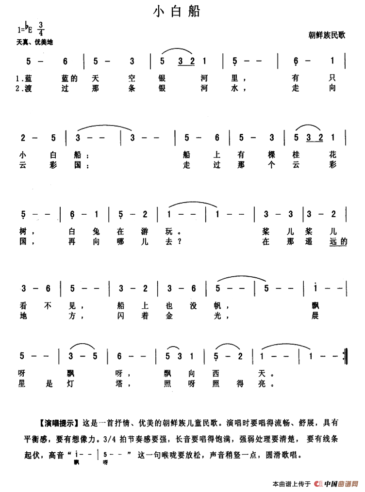 [朝鲜]小白船(线简谱混排版 )