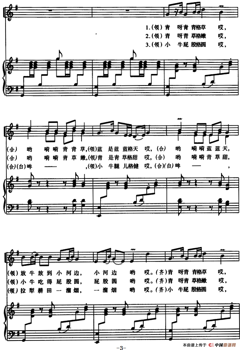 青草小河边(童声二部合唱、正谱)
