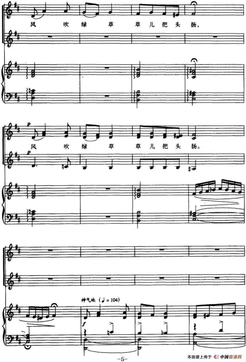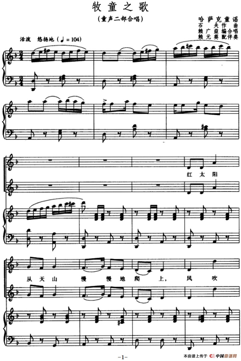 牧童之歌 (童声二部合唱、正谱)相关五线谱