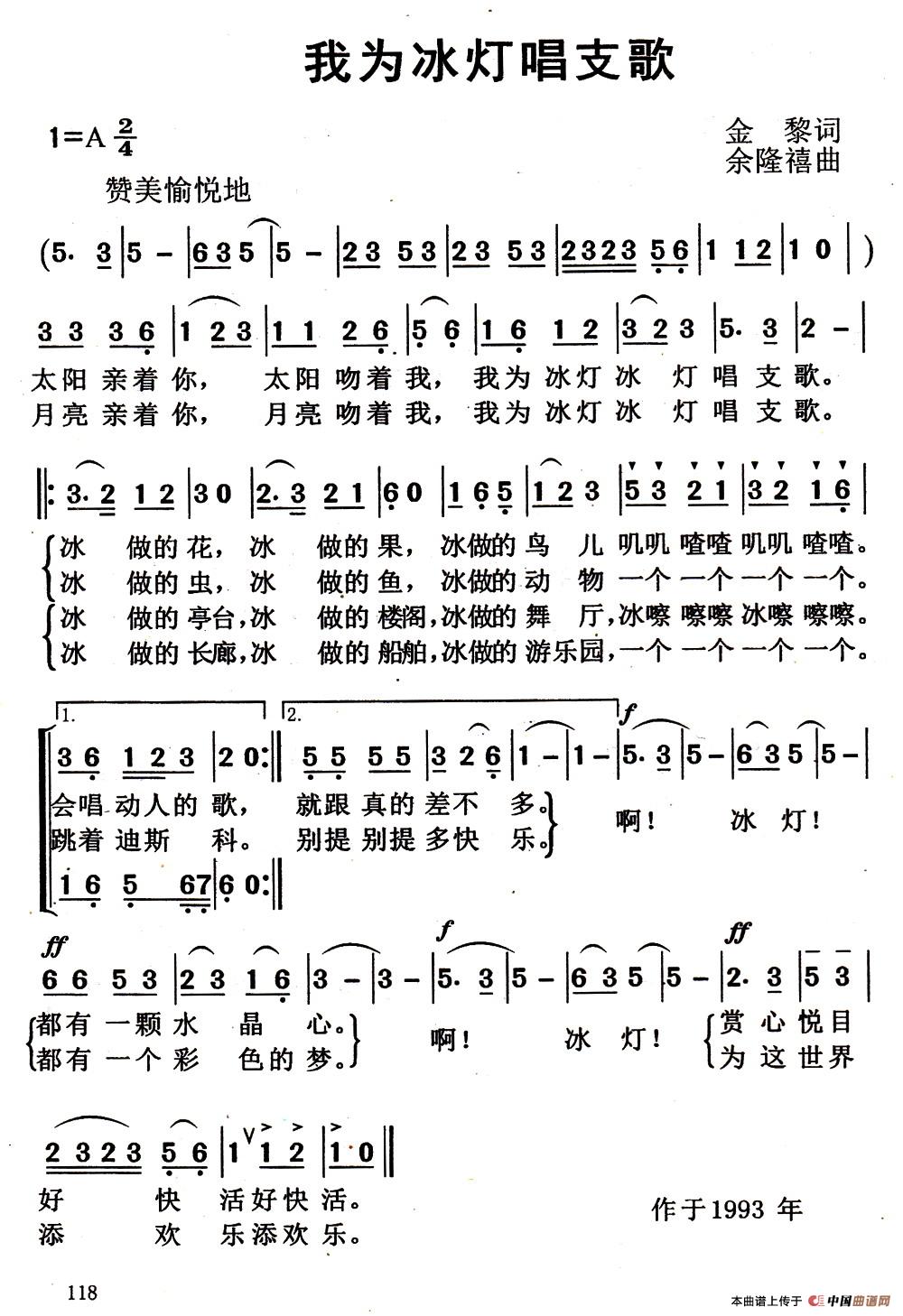 余隆禧曲谱推荐我们学习他农奴的冤仇比海深(歌剧《杜泉山》选曲)可可西里(吴珹词 余隆禧曲)我心中的歌(邰邵周词 余隆禧曲)钓鱼岛在诉说星星(程安国词 余隆禧曲)剩男剩女女人的笑荡秋千(黄伟东词 余隆禧曲)小喜鹊花尾巴(魏宏斌词 余隆禧曲)我曾经亲过你骑马的孩子爱拉琴(华也词 余隆禧曲)相恋(蔡学柯词 余隆禧曲)我爱我的家(蔡学柯词 余隆禧曲)念活爱情这本经女儿已经爱上他从小练汉字小花猫(圣野词 余隆禧曲)我是农家小歌手(倪达词 余隆禧曲)做你的俘虏