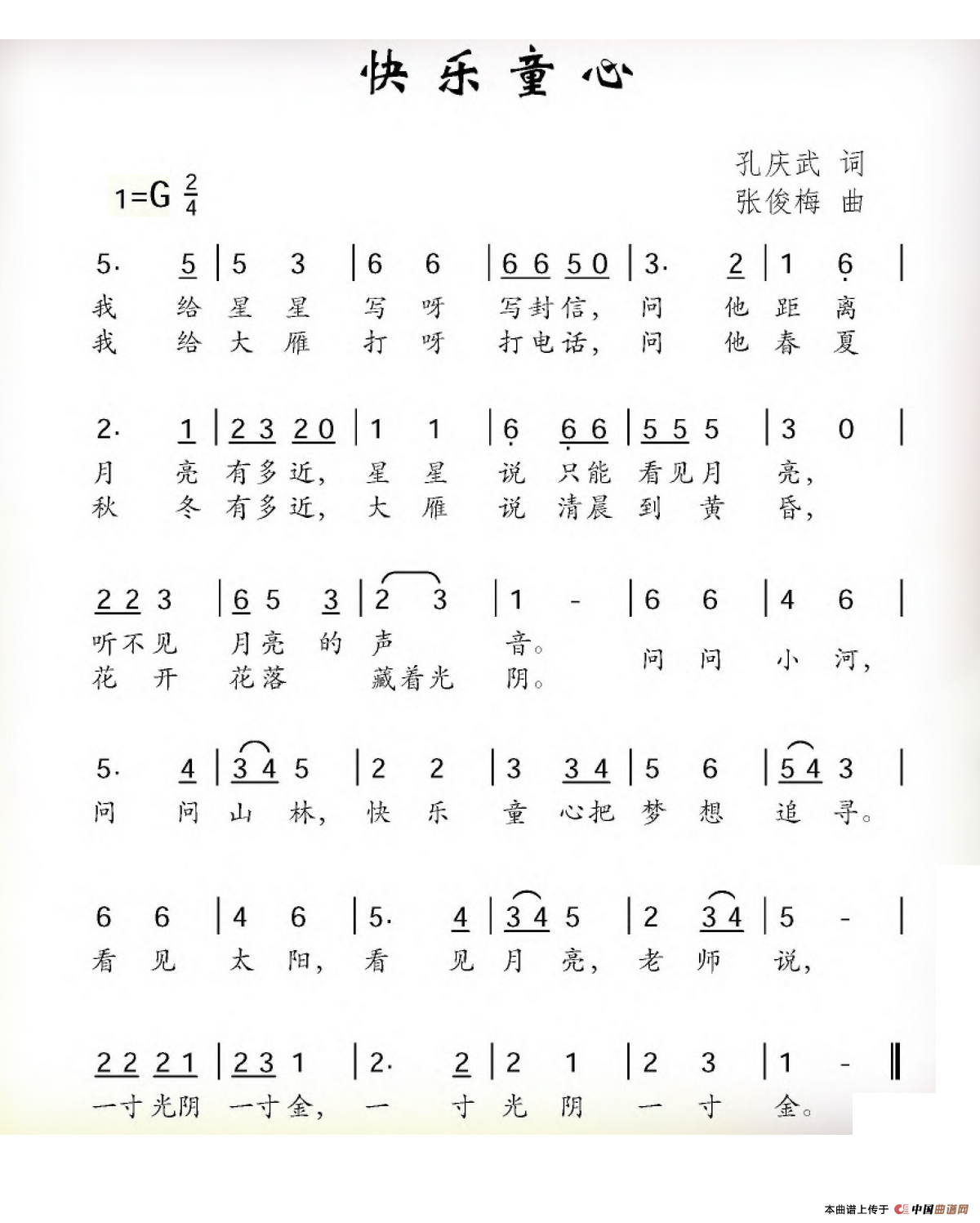 快乐童心(孔庆武词 张俊梅曲)相关五线谱