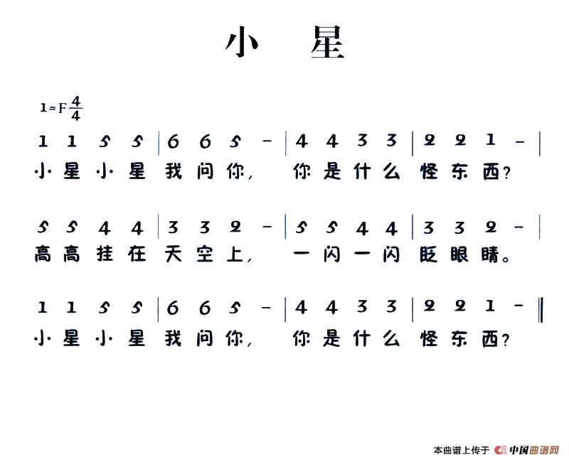 老童歌:小星相关五线谱