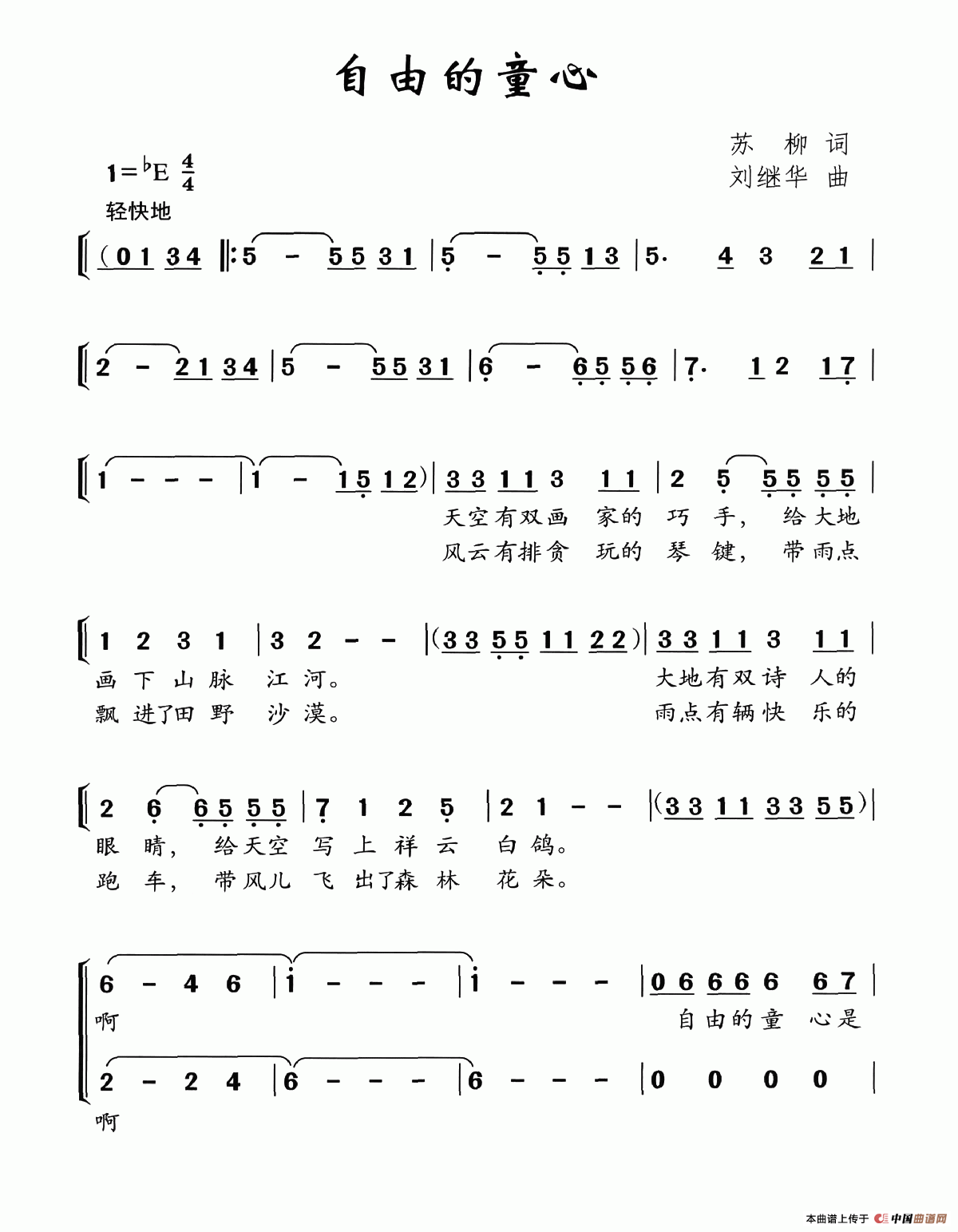 刘继华曲谱推荐甜甜的岁月(牛峰词 刘继华曲)雪花带来冬天的梦吉祥草原(张宝星词 刘继华曲)星星和月亮(阴海鹏词 刘继华曲)追赶蒲公英(童声二重唱)金色盾牌的诺言不倒翁(魏义金词 刘继华曲)追赶蒲公英(合唱)眼里的天空你会很美丽少年的世界(姜建新词 刘继华曲)