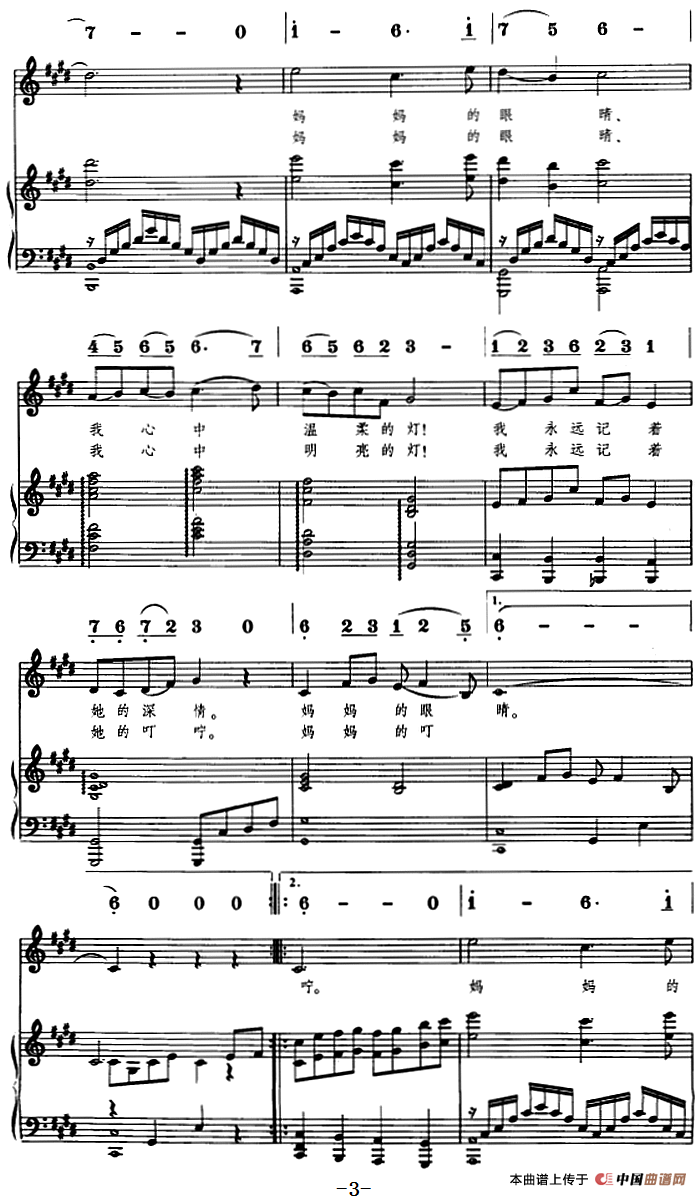 我爱妈妈的眼睛(线简谱对照、正谱)