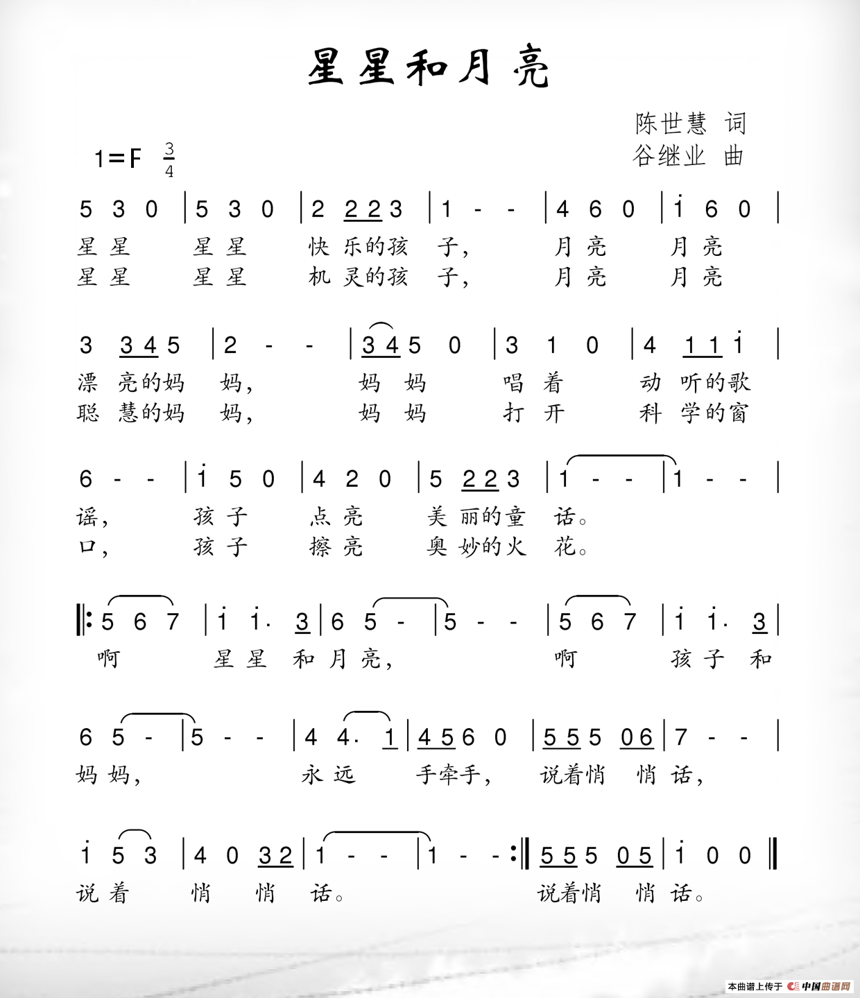 谷继业曲谱推荐送给老师的画小小足球迷小美妞画老师水兵梦里海蓝蓝(彭子柱词 谷继业曲)星星和妈妈牵手到永久(谷继荣词 谷继业曲)给春天化妆妈妈给我包水饺红旗飘飘(杨显群词 谷继业曲)祖国,母亲(邓永旺词 谷继业曲)我爱阳光(胡泽民词 谷继业曲)爱如阳光(双子词 谷继业曲)童年季节祖国母亲(邓永旺词 谷继业曲)留守娃娃也是宝爸爸妈妈是一条船我的名字叫绿草音乐小公主甜甜的小笑涡