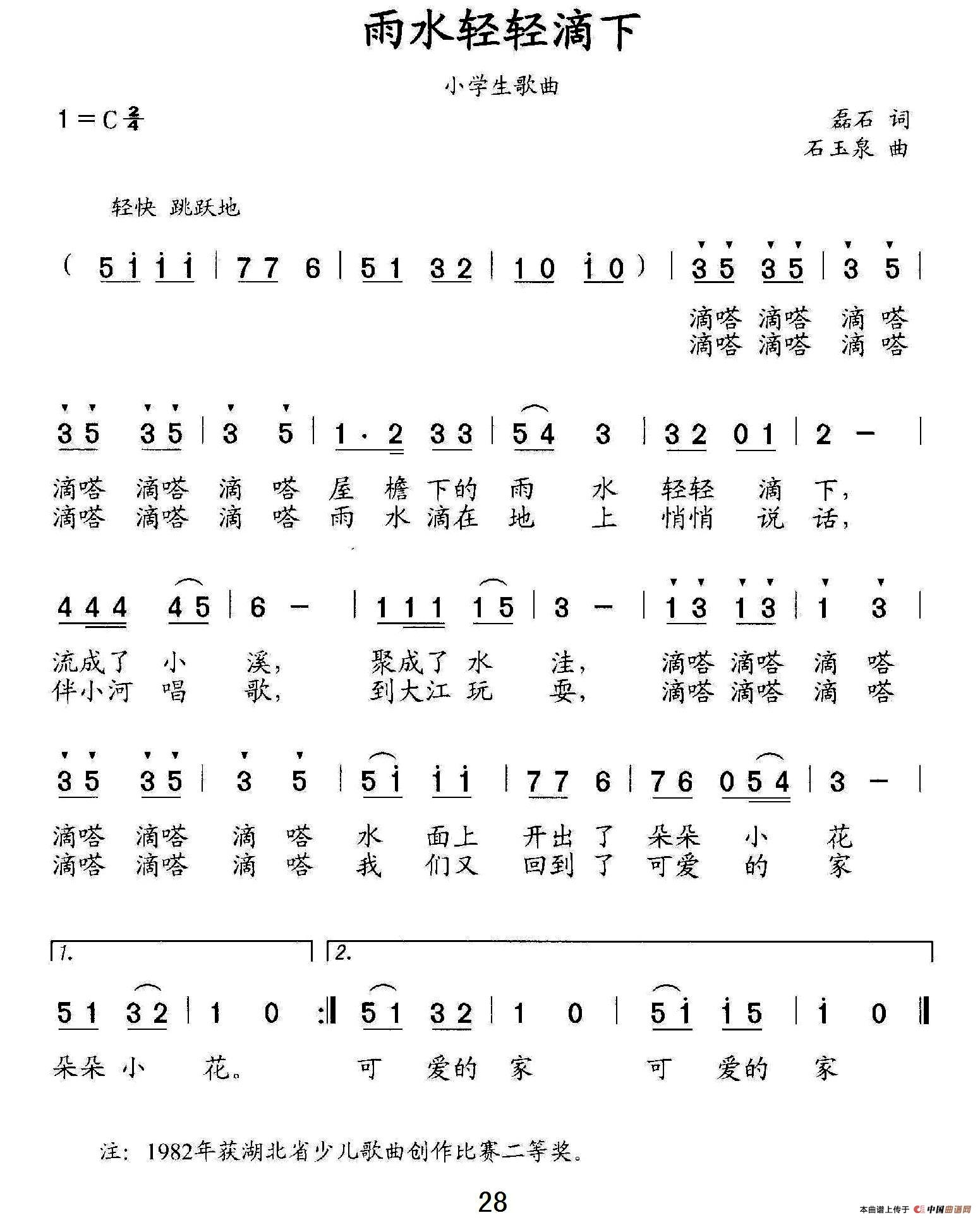 石玉泉曲谱推荐雪恋花(潘景超 王雅清词 石玉泉曲)老师,因为有了你幺妹回三峡你在哪里(雷子明词 石玉泉曲)三峡恋歌(周立荣词 石玉泉曲)我的工具包趁我们现在正年轻我歌唱黄河,我歌唱长江得乐歌(男女声对唱、伴唱)三峡迎宾曲我们是少年探宝队灵渠秀,燕子美(柏泉词 石玉泉曲)灿烂的明星城谱写明天的辉煌(当阳市公安小学校歌)土家花背篓(男女声对唱)三峡人巧扮三峡春(合唱、领唱)前进,三峡工行开发长江的新一代(男女声组合)一条玉带盘山绕(微型音乐剧《五花进城》曲一)祖国啊祖国(韩映红词 石玉泉曲)