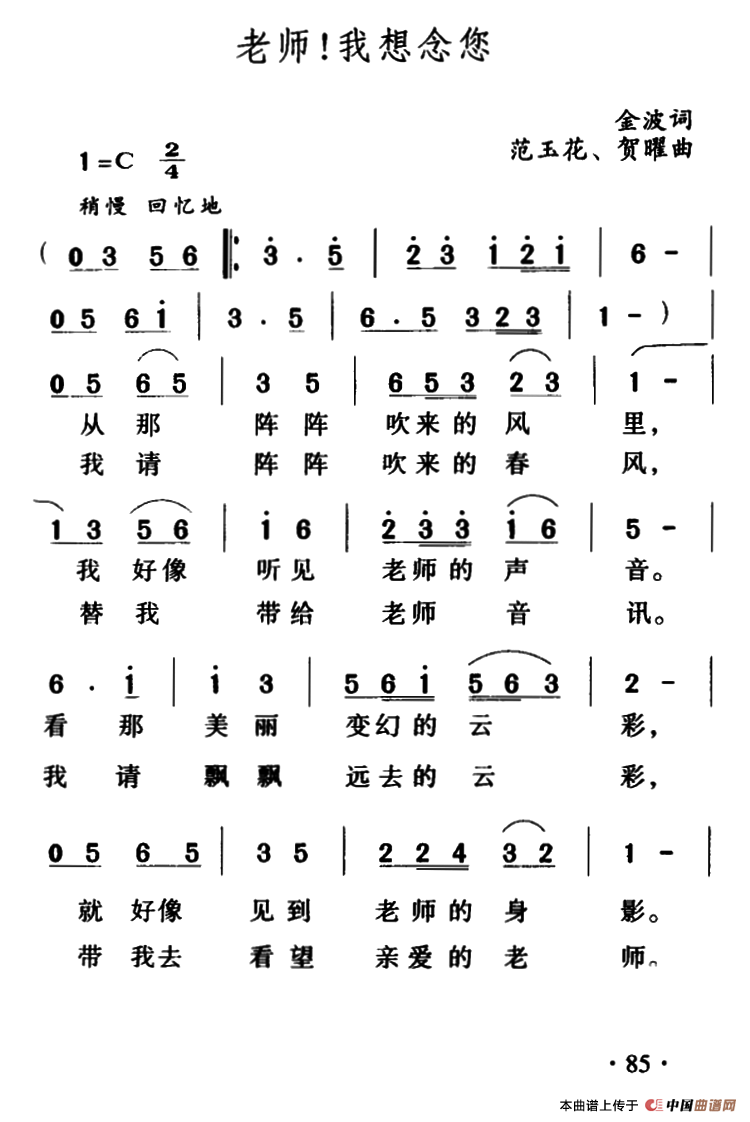 老师,我总是想起你(正谱)