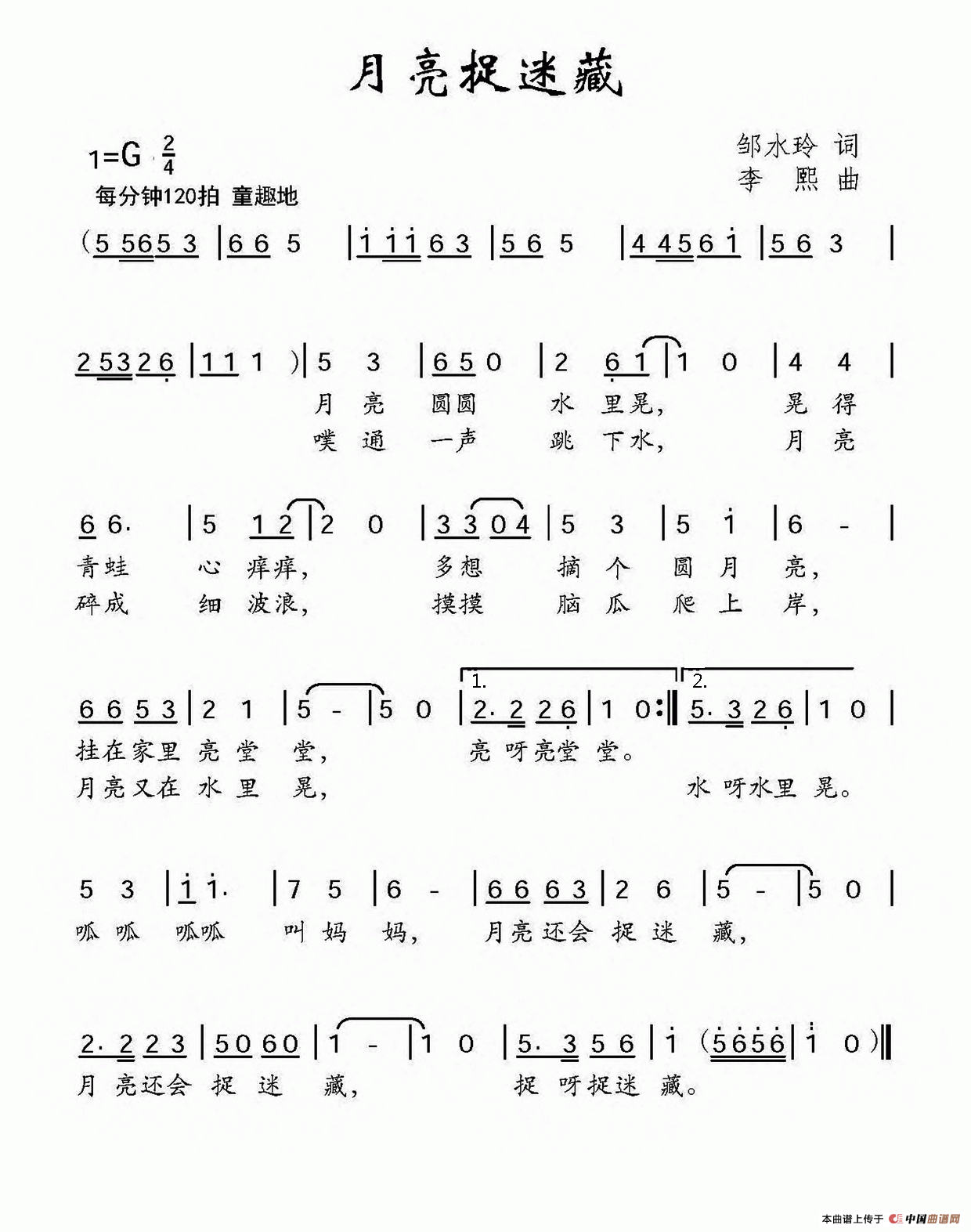 月亮捉迷藏相关五线谱