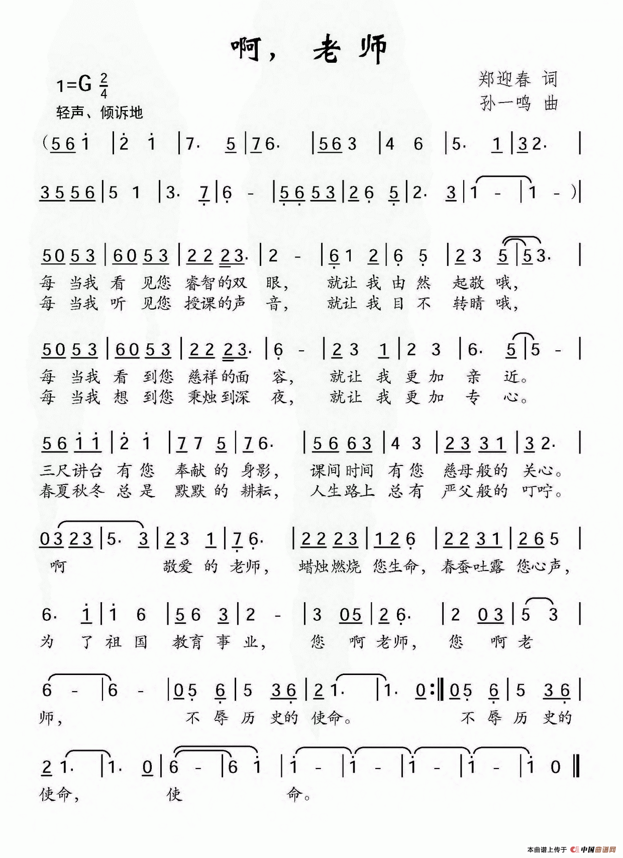 孙一鸣曲谱推荐中国梦(张枚同词 孙一鸣曲)暮色里的村庄(王冠群词 孙一鸣曲)我很想家(李昌明词 孙一鸣曲)好花红(梁和平词 孙一鸣曲)太旧颂歌共庆良宵田野上的风美丽中国(韩雪词 孙一鸣曲)你家我家(张枚同词 孙一鸣曲)我是你旗帜上的一根丝线濠江谣老师我想……爱情雨(龙远开词 孙一鸣曲)少先队员盼回归永远的老家中国梦(魏丕植词 孙一鸣曲)小雨小雨淅沥沥洒我的中国与美丽同行(梁和平词 孙一鸣曲)喊一声妈妈泪花流(刘爱斌词 孙一鸣曲)情醉中华(赵凌云词 孙一鸣曲)