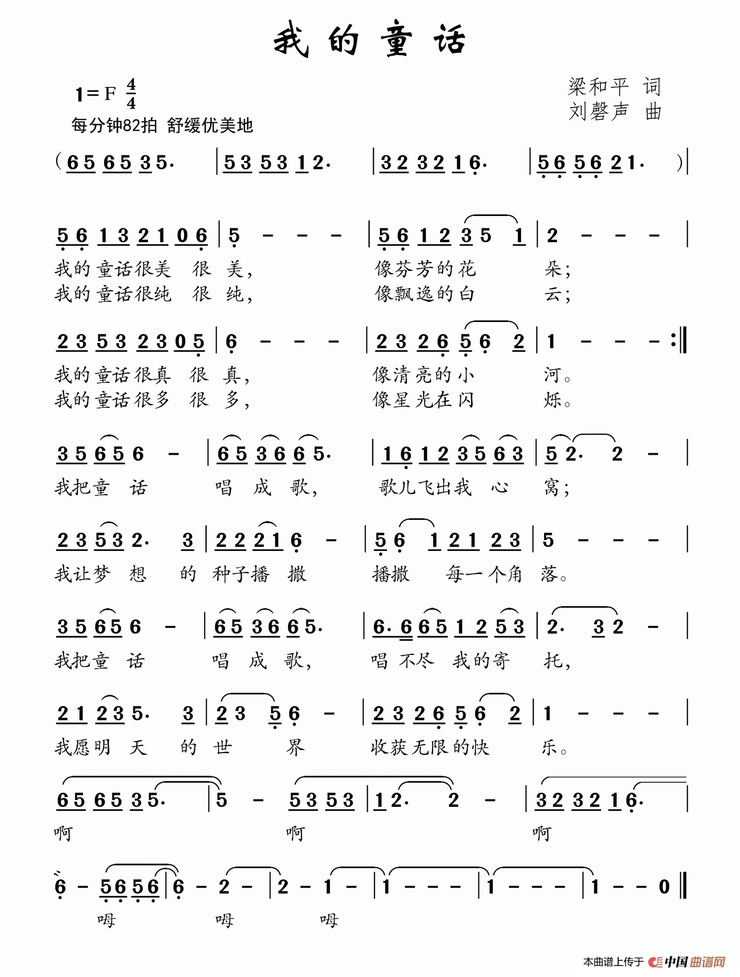 刘磬声曲谱推荐可爱的中国让幸福排着队(梁和平词 刘磬声曲)十七岁的天空(独唱+伴唱)阳光季节(梁和平词 刘磬声曲)唱给远山的歌花瓣小船加减乘除(梁和平词 刘磬声曲)在青翠的山谷里(金鸿为词 刘磬声曲)快乐的小鹧鸪(魏德泮词 刘磬声曲)把心儿种在春天里我是宝贝(李幼容词 刘磬声曲)雨夜摇篮曲四季的故事团团圆圆(李幼容词 刘磬声曲)跟着阿爸去赶圩春天的翅膀走在和谐阳光里(合唱)要做最好的我(李幼容词 刘磬声曲)牧羊(陈佑松词 刘磬声曲)跨世纪的新一代荆州古事