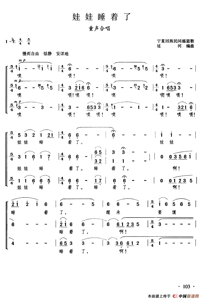娃娃睡着了(合唱)相关五线谱