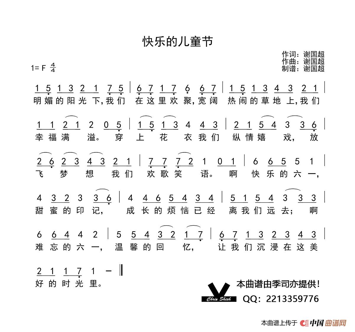 快乐的儿童节(谢国超词 谢国超曲)相关五线谱