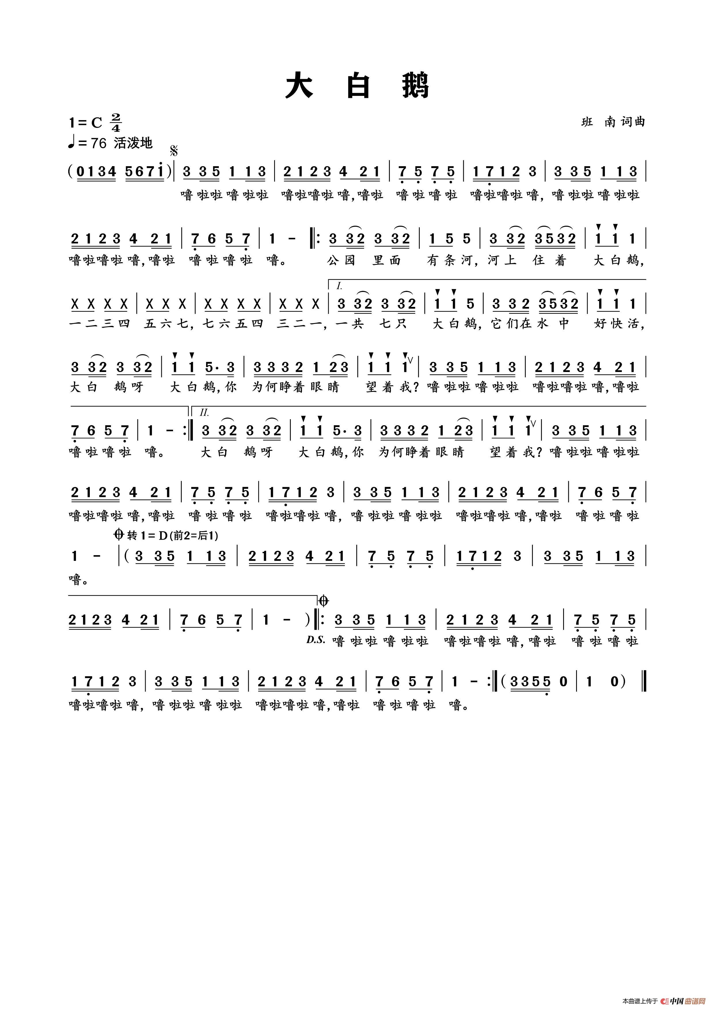 大白鹅(班南 词曲)相关五线谱