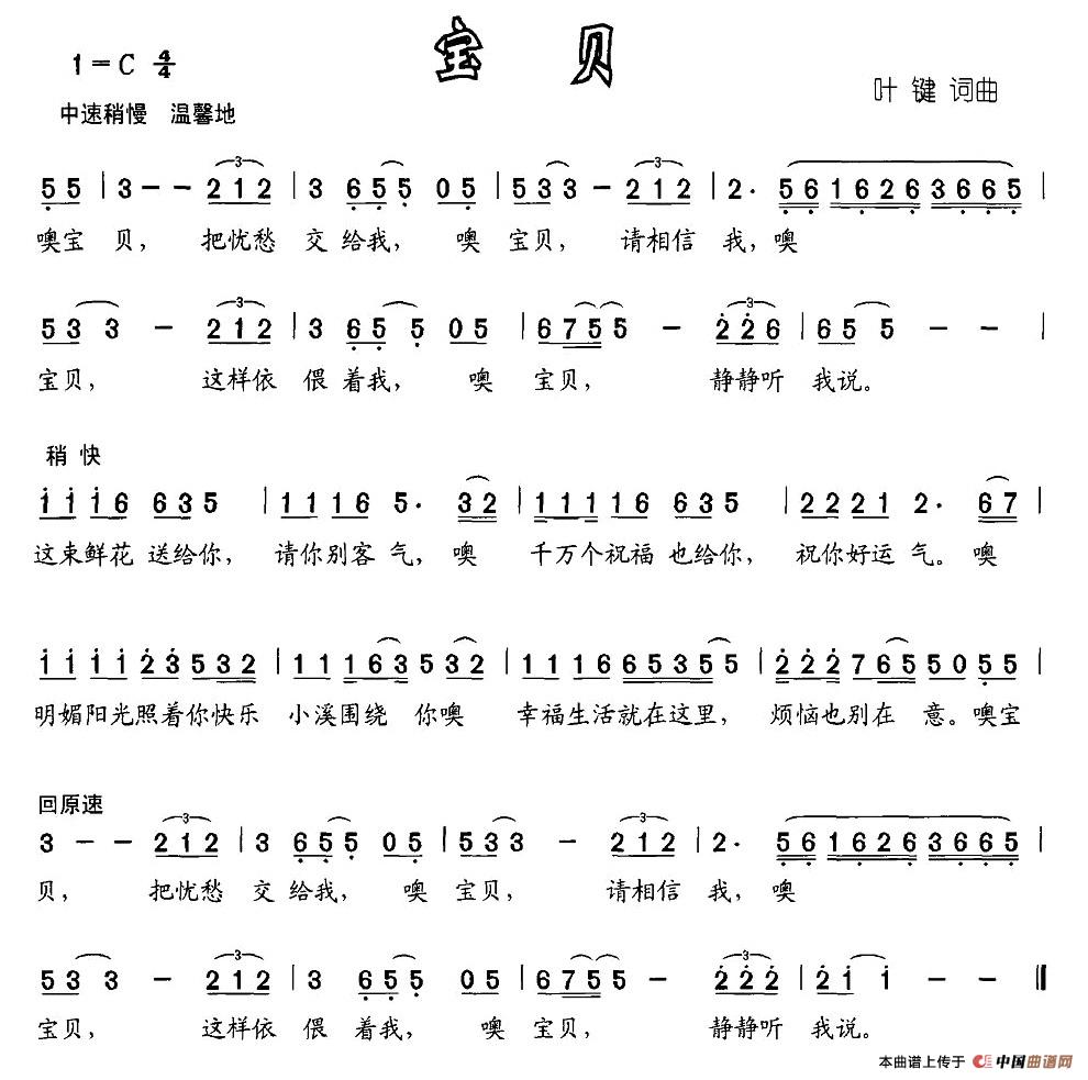 宝贝(叶健词曲)相关五线谱