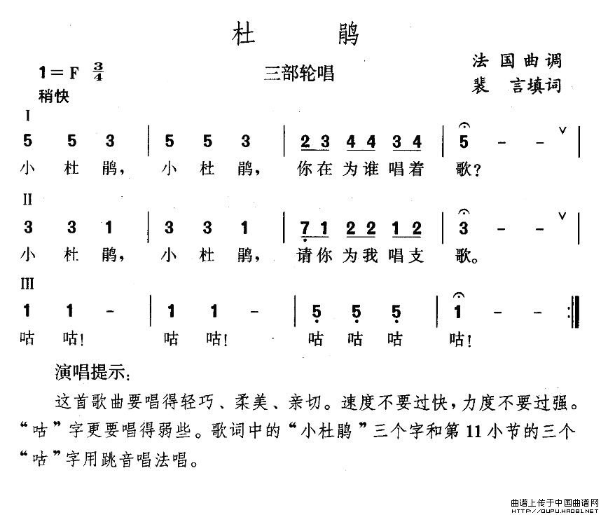 杜鹃(法国曲调、裴言填词)相关五线谱
