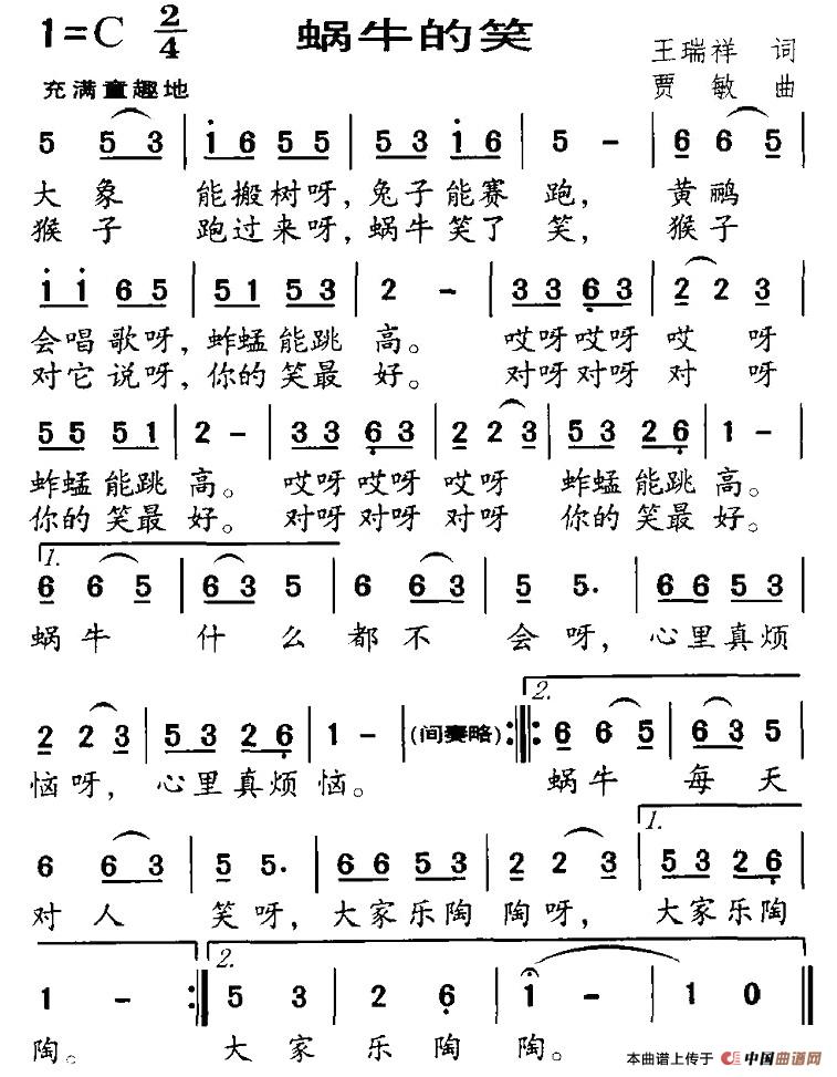 蜗牛的笑相关五线谱