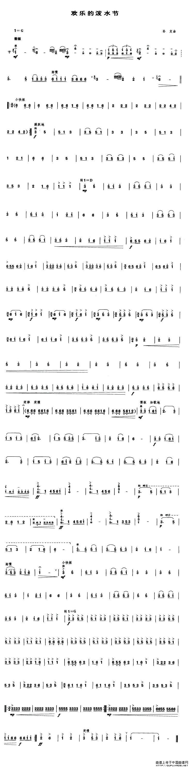欢乐的泼水节(笙谱)相关五线谱