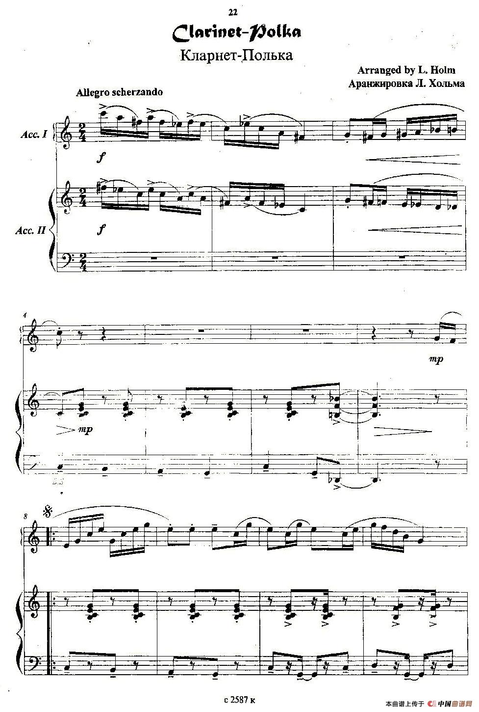 单簧管波尔卡 (手风琴二重奏)相关五线谱