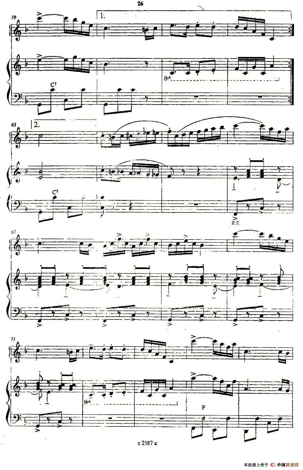 升f小调第一单簧管奏鸣曲(第三乐章、单簧管+钢琴伴奏)