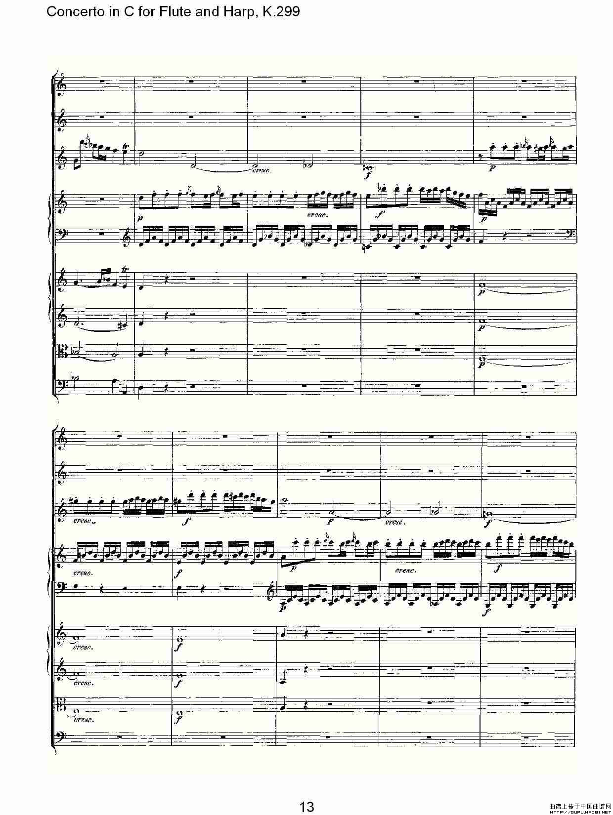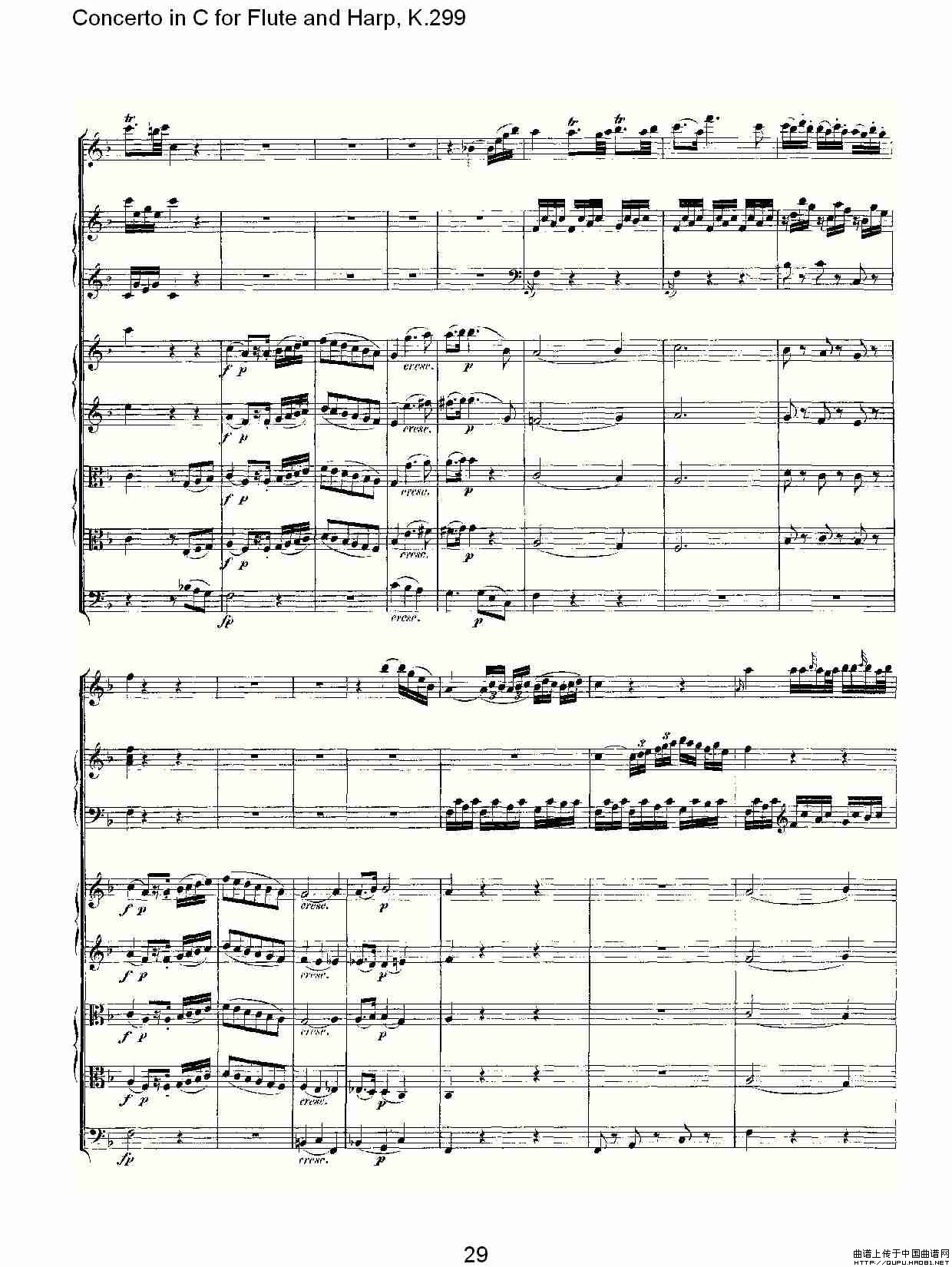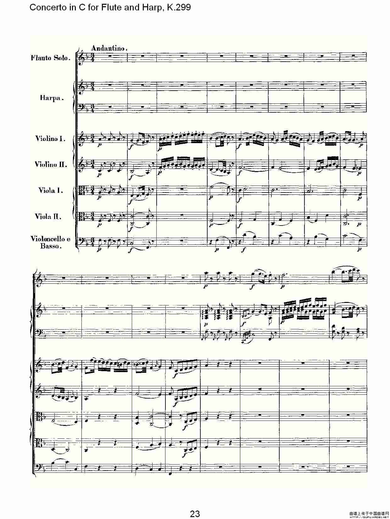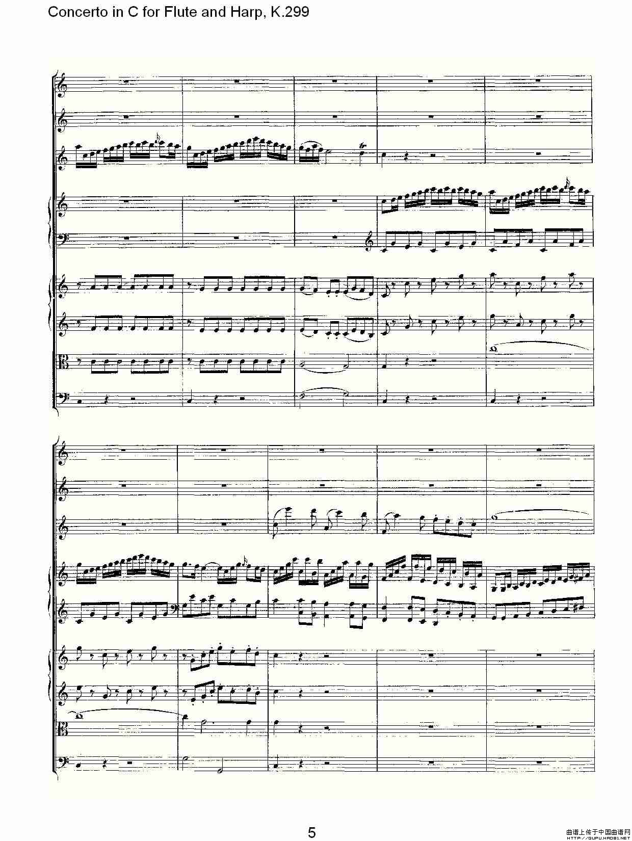 C调长笛与竖琴协奏曲, K.299(一)相关五线谱