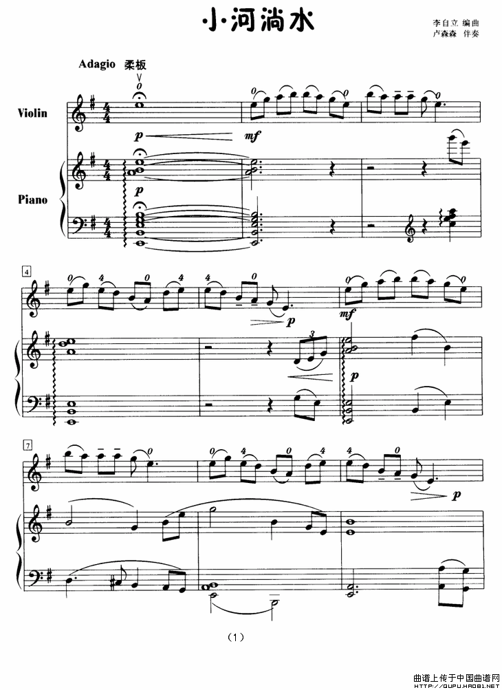 小河淌水(小提琴+钢琴)相关五线谱