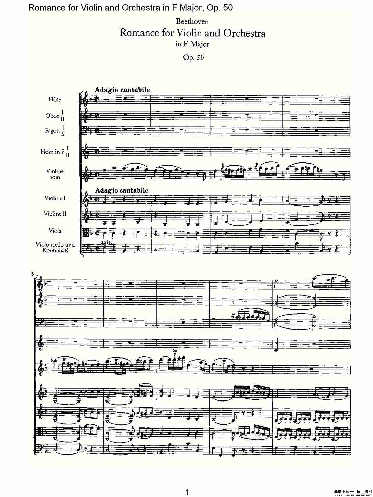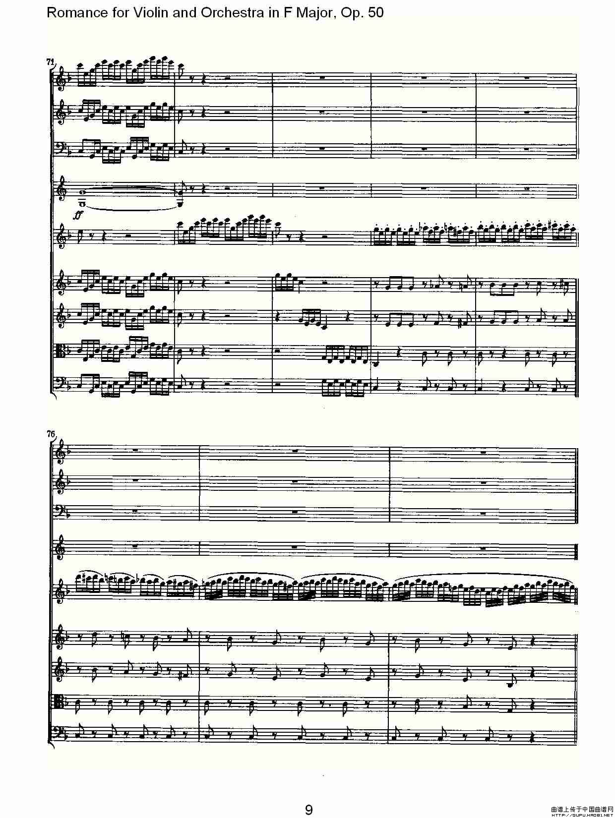 小提琴与管弦乐奏F大调浪漫曲 Op.50相关五线谱