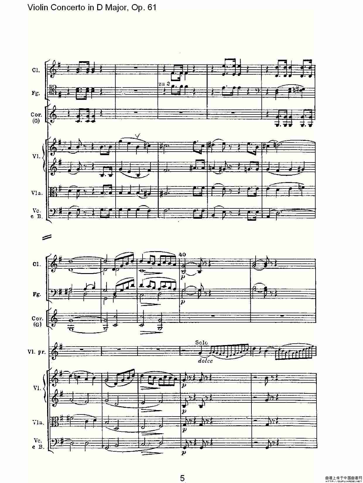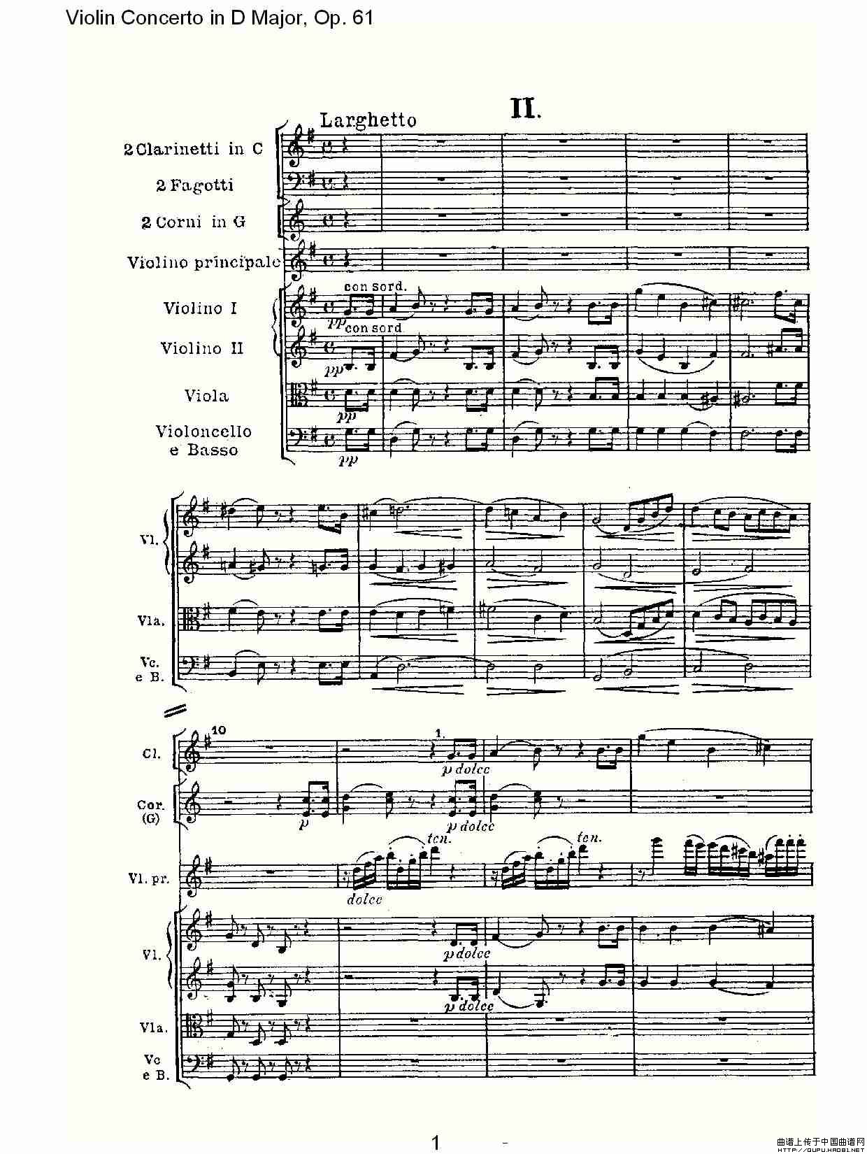 D大调小提琴协奏曲 Op.61 第二乐章相关五线谱