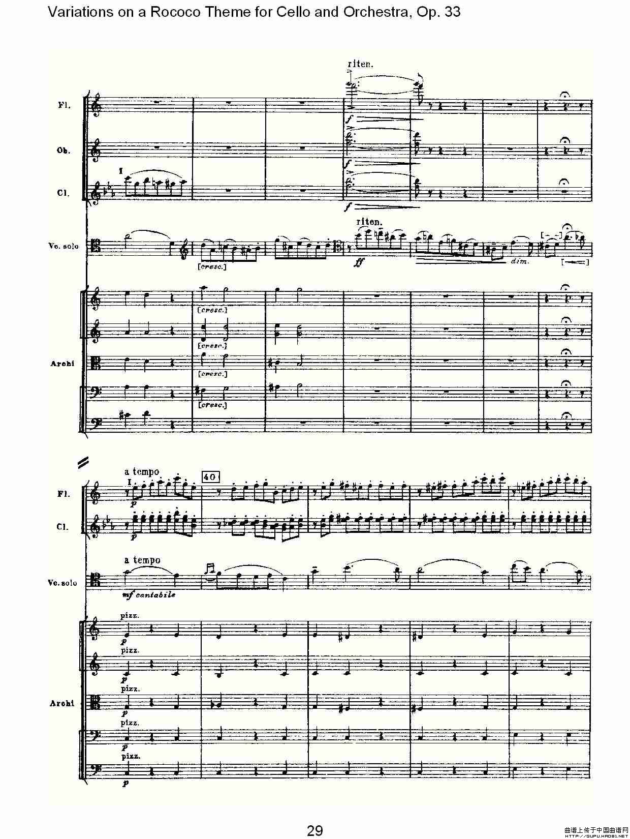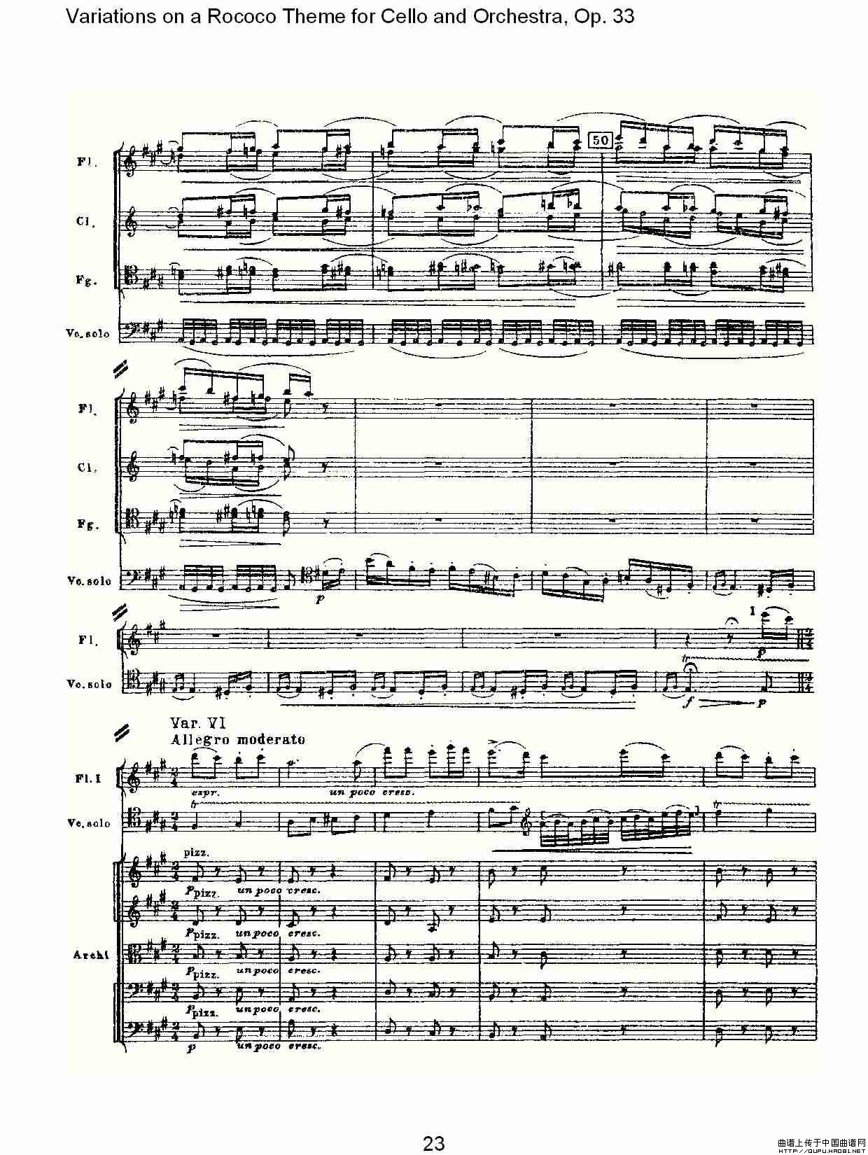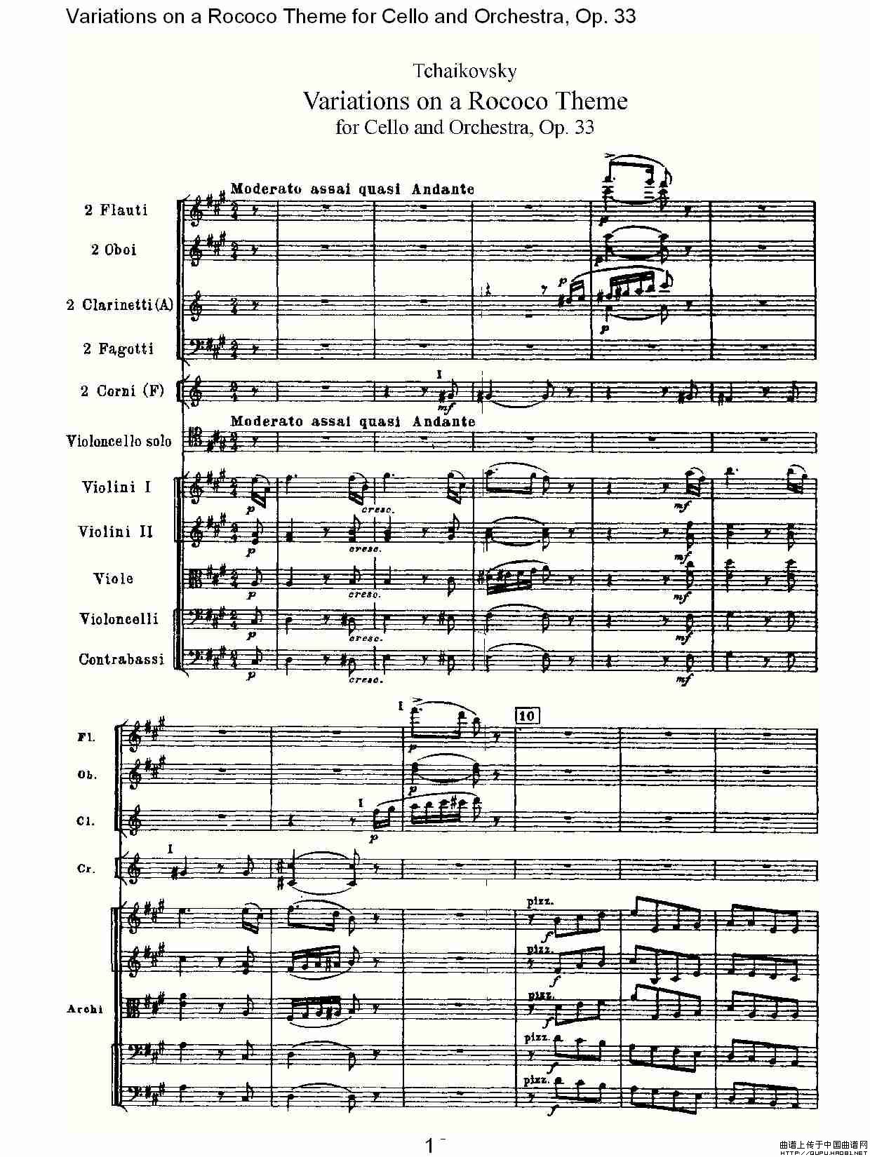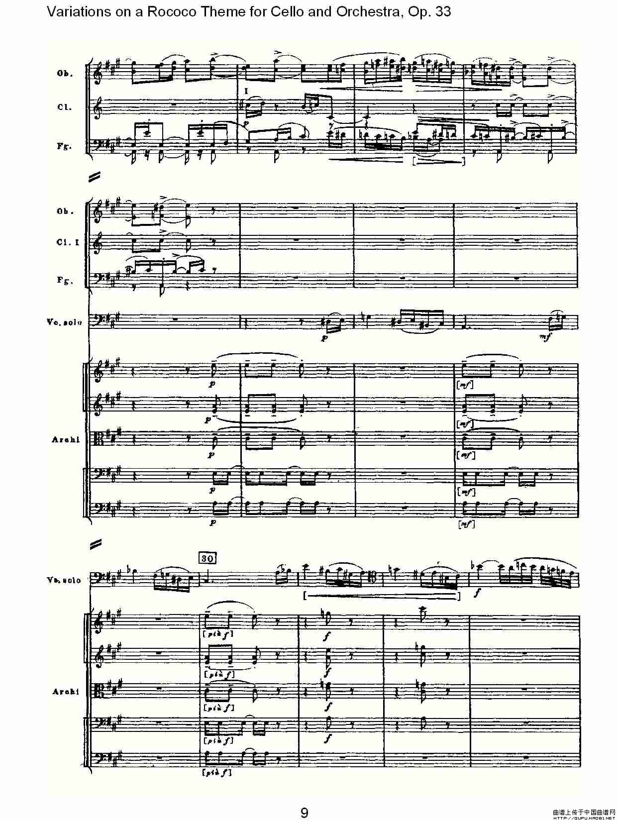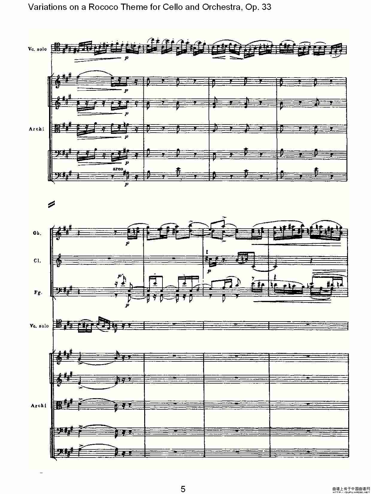 大提琴与管弦乐洛可可主题a小调变奏曲, Op.33(一)相关五线谱