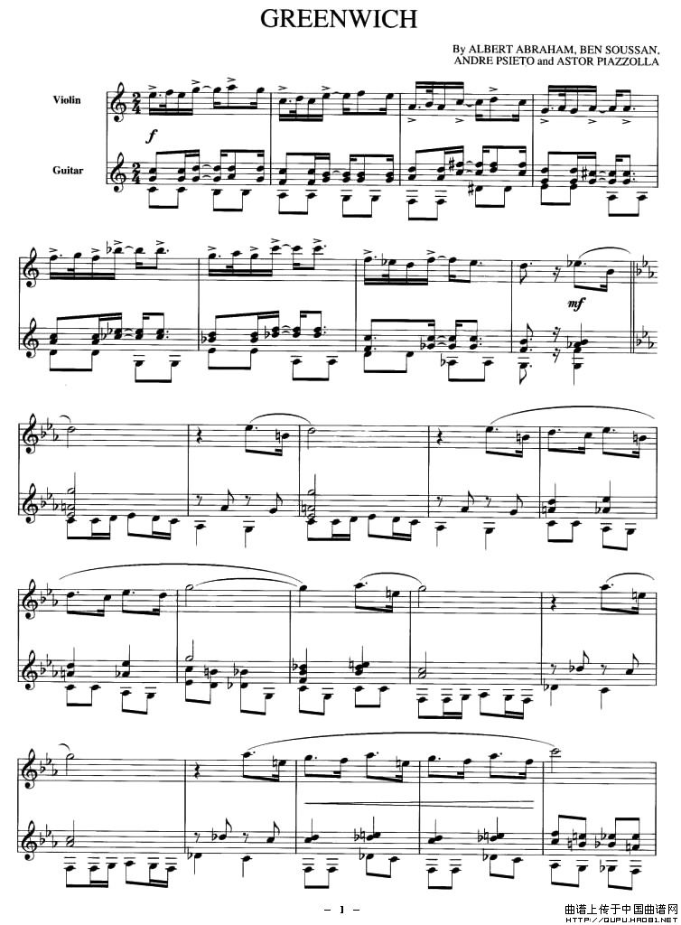 GREENWICH(小提琴+吉他)相关五线谱