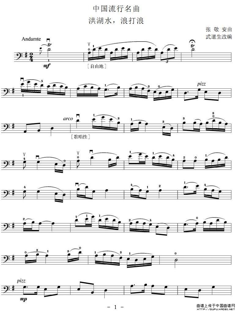 洪湖水,浪打浪(大提琴谱)相关五线谱