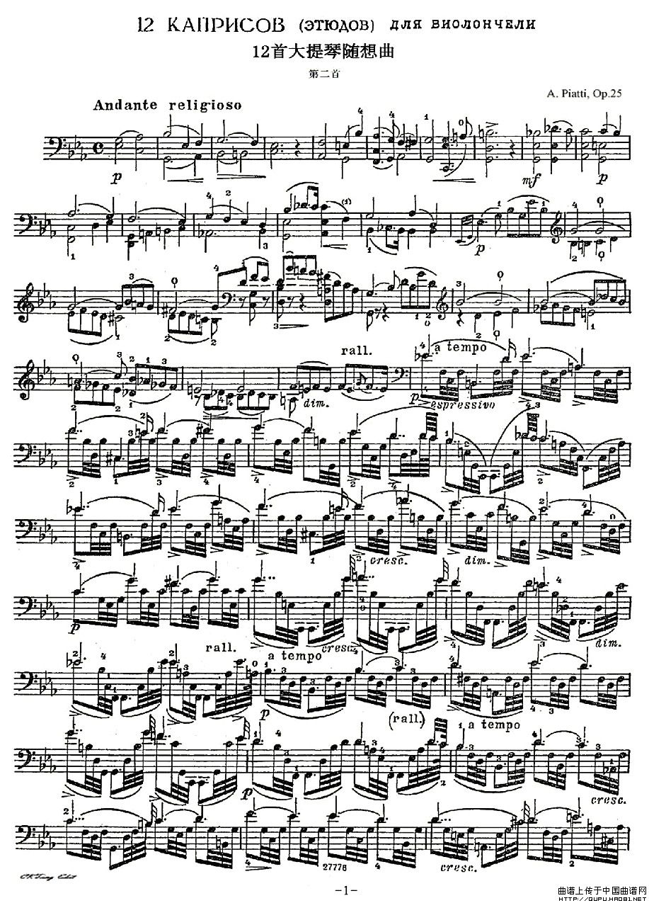 A. Piatti 12 Caprice Op.25(皮阿蒂 12首大提琴随想曲) 第二)相关五线谱