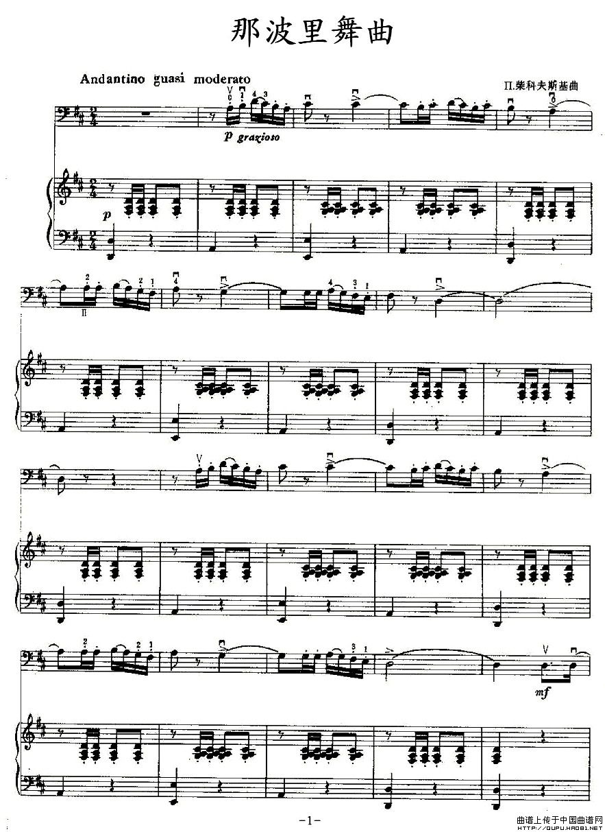 那波里舞曲(大提琴+钢琴)相关五线谱