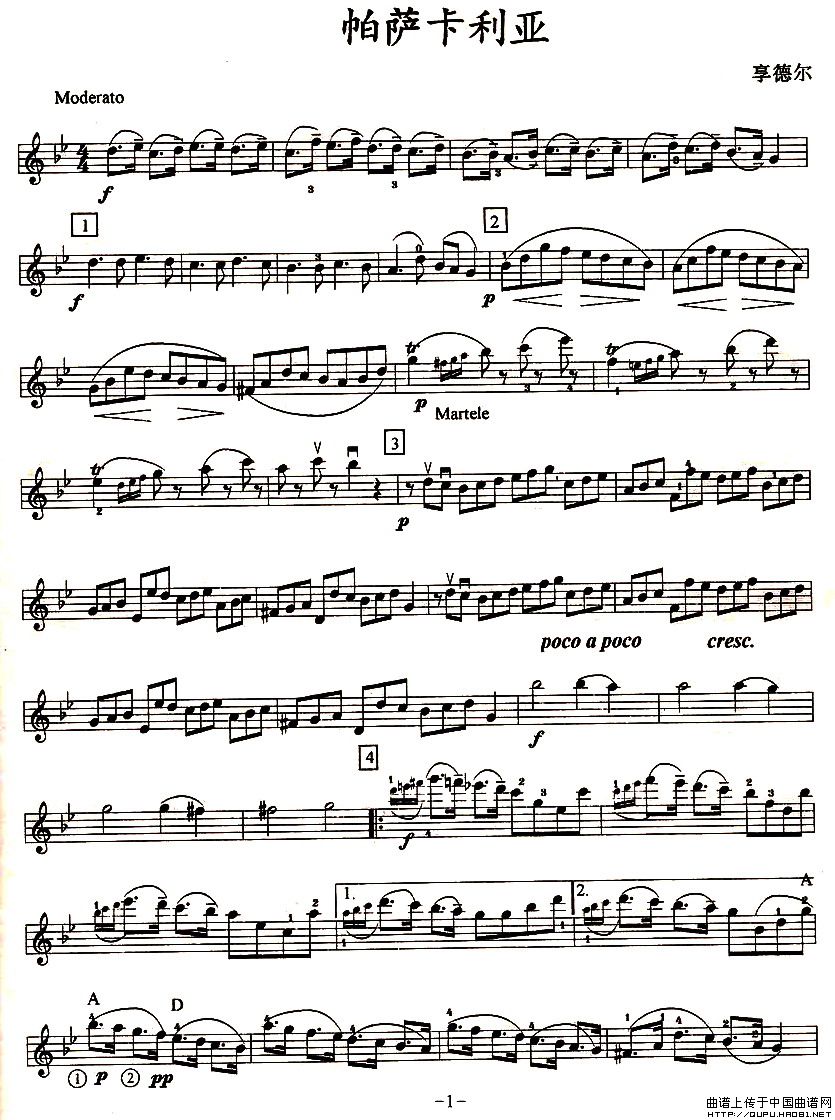 帕萨卡利亚(四重奏之第一小提琴)相关五线谱