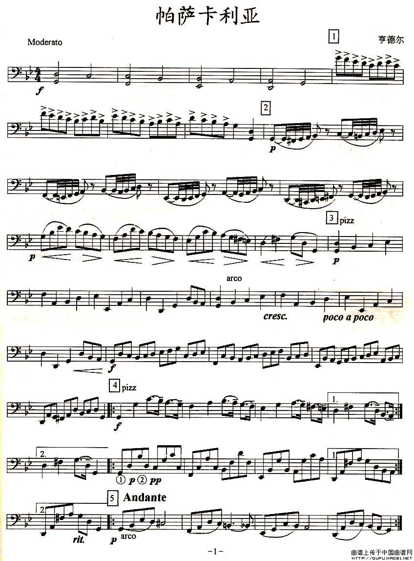 帕萨卡利亚(四重奏之大提琴)相关五线谱