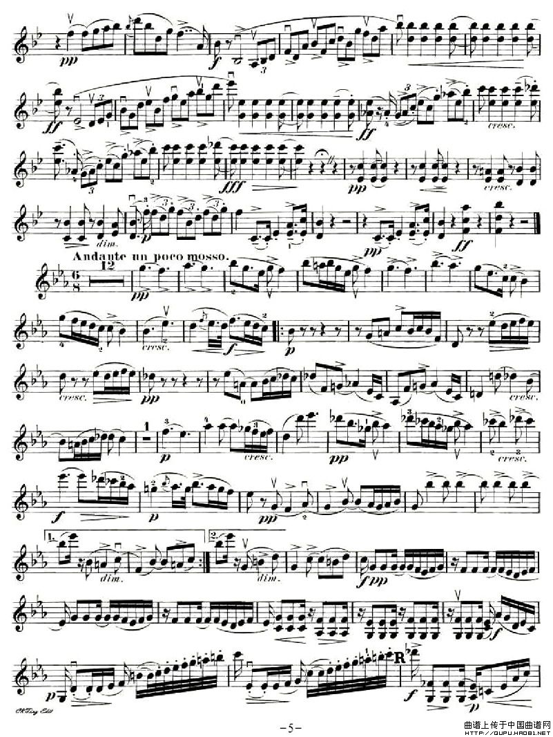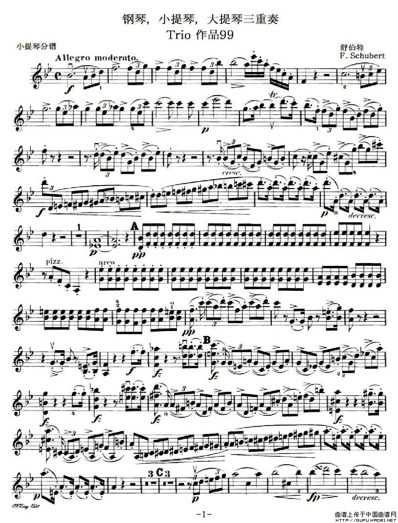 第一钢琴,小提琴,大提琴三重奏 Op.99之小提琴分谱相关五线谱